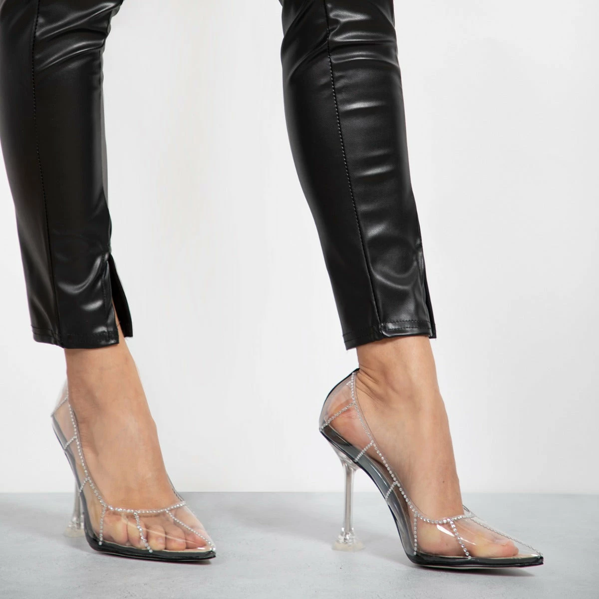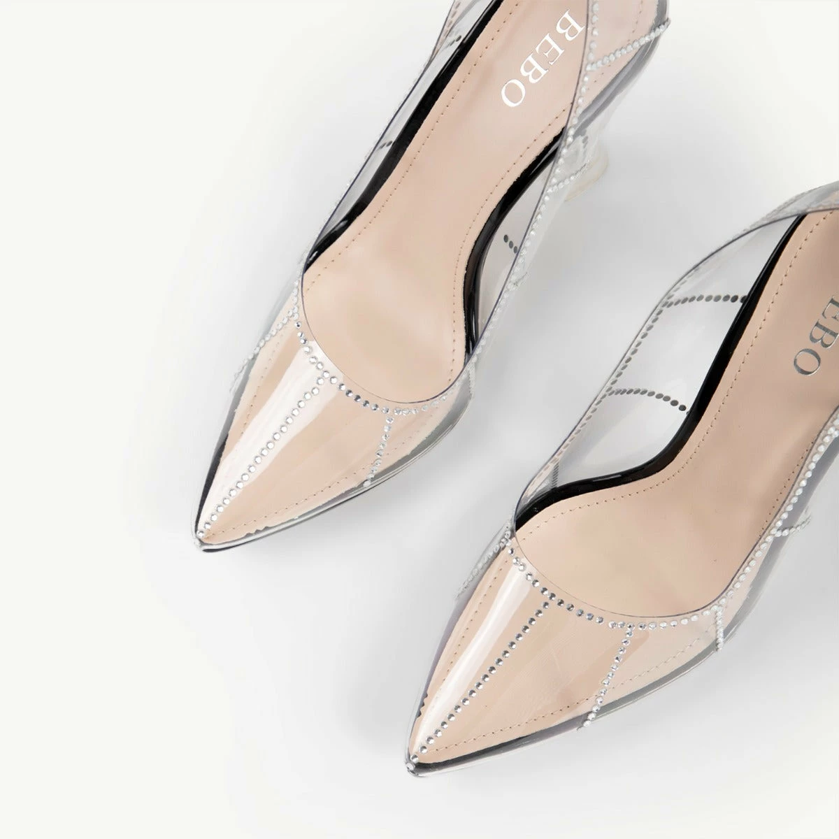 Luxury and style come together with the BEBO Demmy Perspex Court Heels. With a black colourway, beautiful diamante detailing, and a sturdy Perspex heel, these shoes offer the ultimate in chic elegance. Perfect for special occasions!
