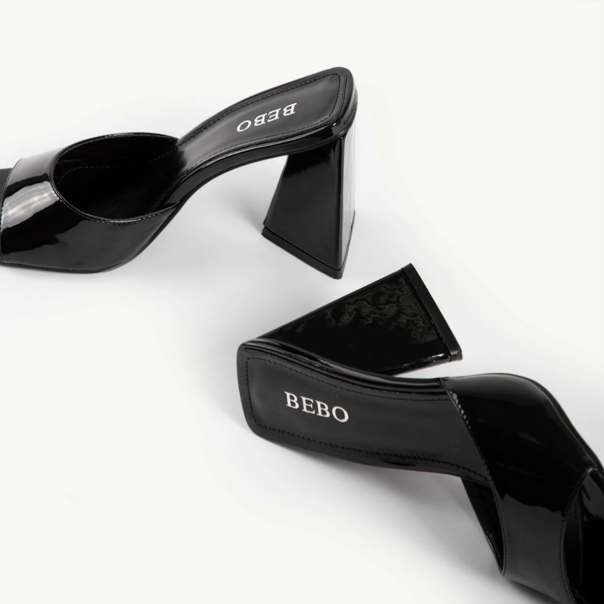 Feel bold and beautiful in the BEBO Kyrah Heeled Mule. Its sleek black patent leather construction adds a touch of sophistication to any look, and its classic mule silhouette makes it perfect for both day and night. Make a statement today!