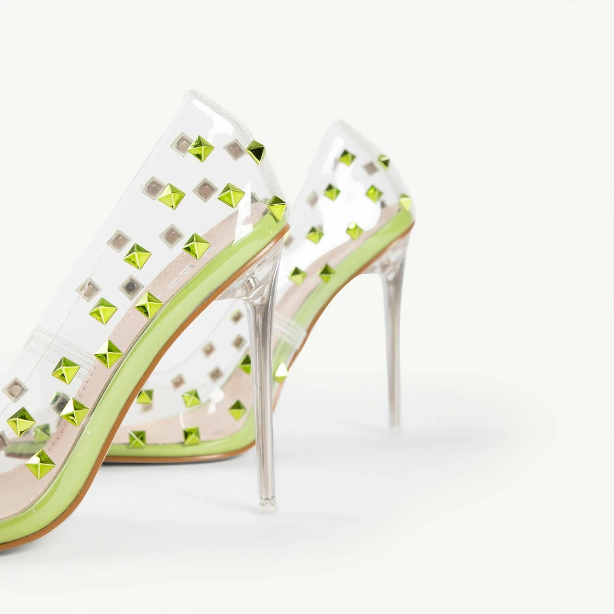 The BEBO Mayra Court Shoe makes a bold statement with its ultra-modern design. Featuring a refreshing lime green stud and clear Perspex heel, these heels are perfect for making a striking entrance. Make sure you stand out with these stunningly unique shoes.