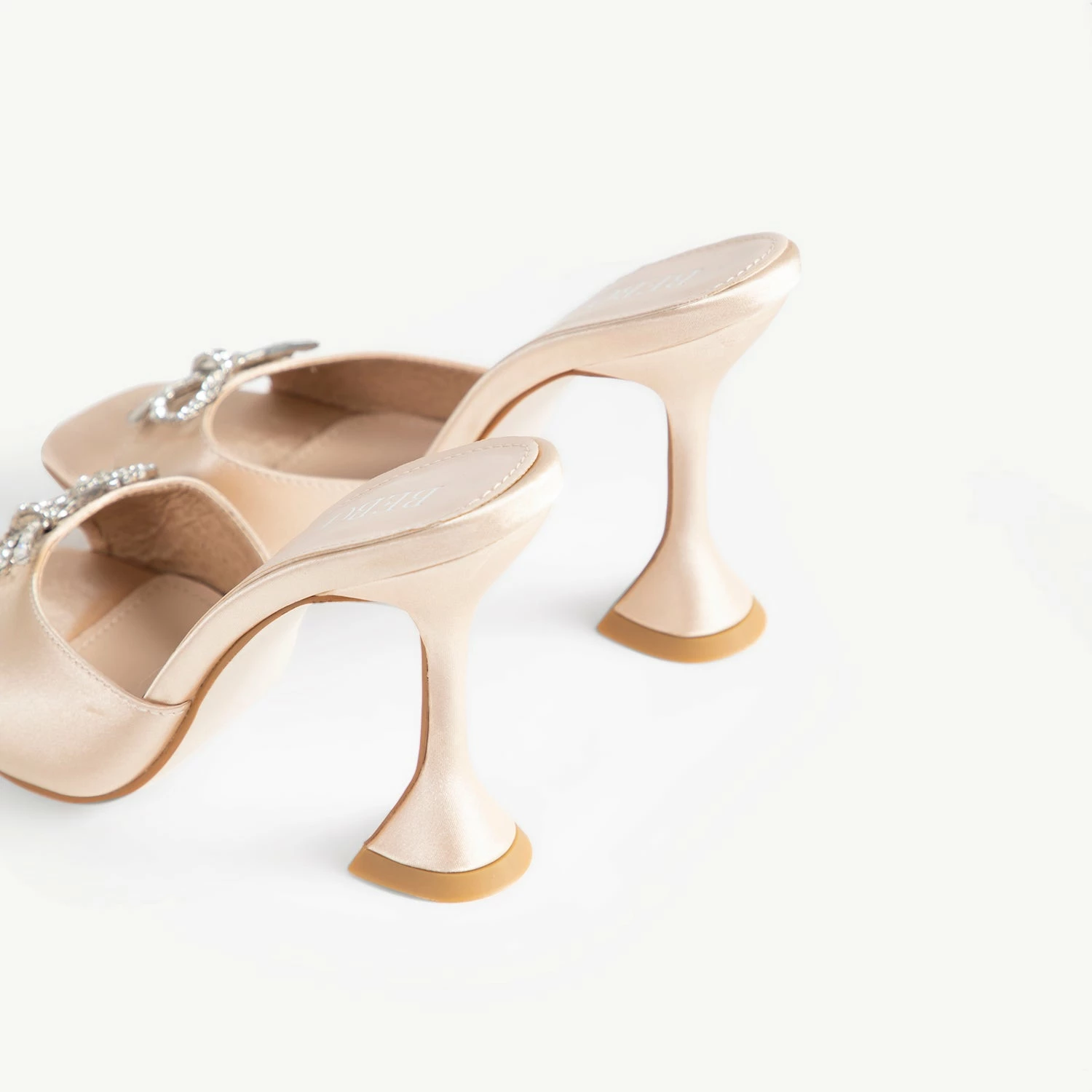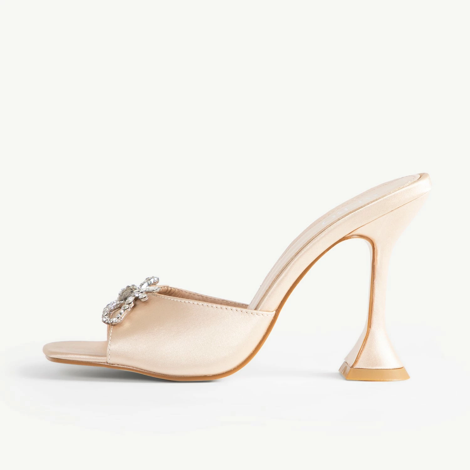 The stylish BEBO Rizzle Heeled Mule is perfect for any special occasion. Crafted in glossy champagne satin, the shoe features a unique heel and a dazzling diamante bow for a luxurious finish. Enjoy a night out feeling glamorous and on-trend.