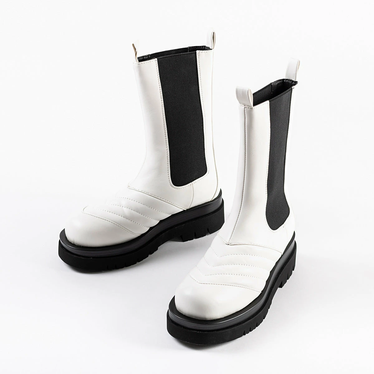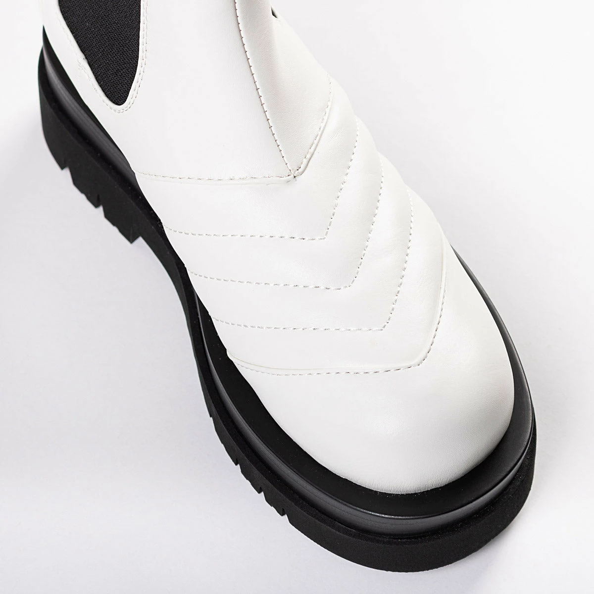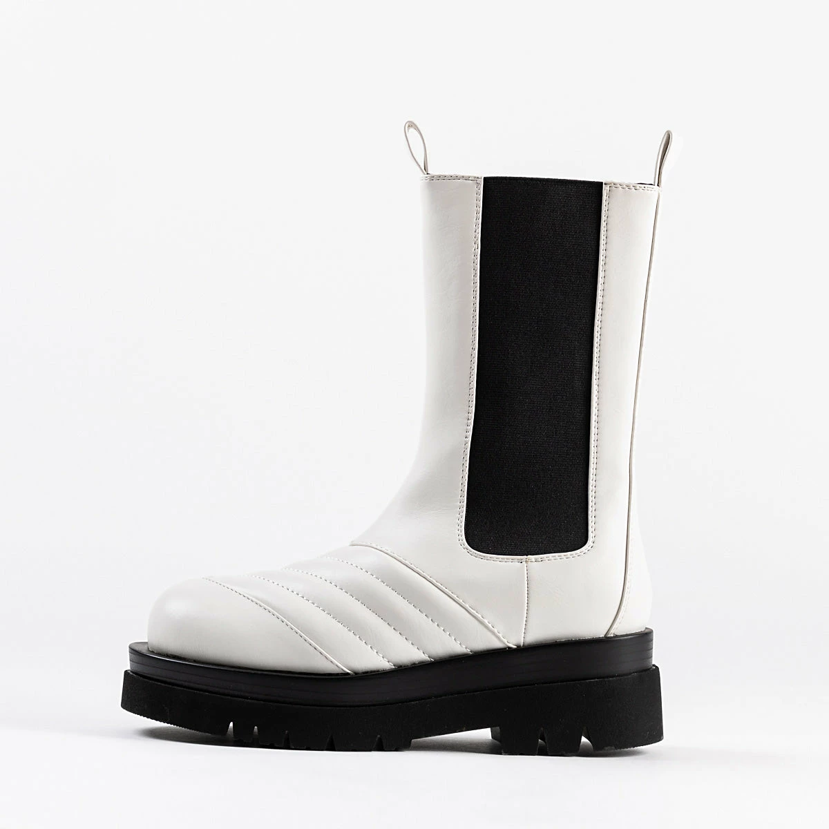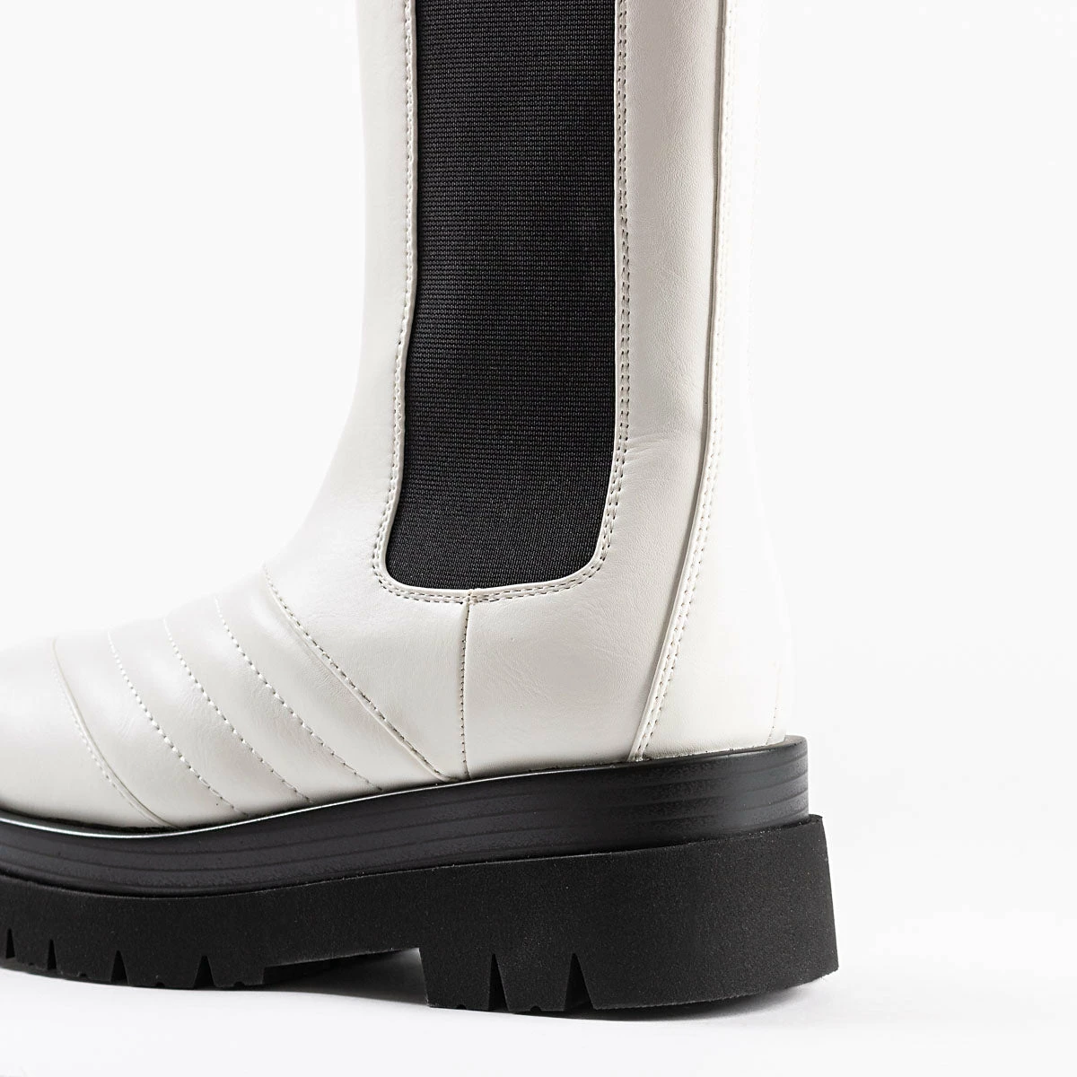 The RAID Adalee Ankle Boot is perfect for everyday style. It features a sleek white upper and durable chunky black sole, ensuring comfortable, long-lasting wear. With its modern, minimal design, this shoe will become your go-to for everyday fashion.