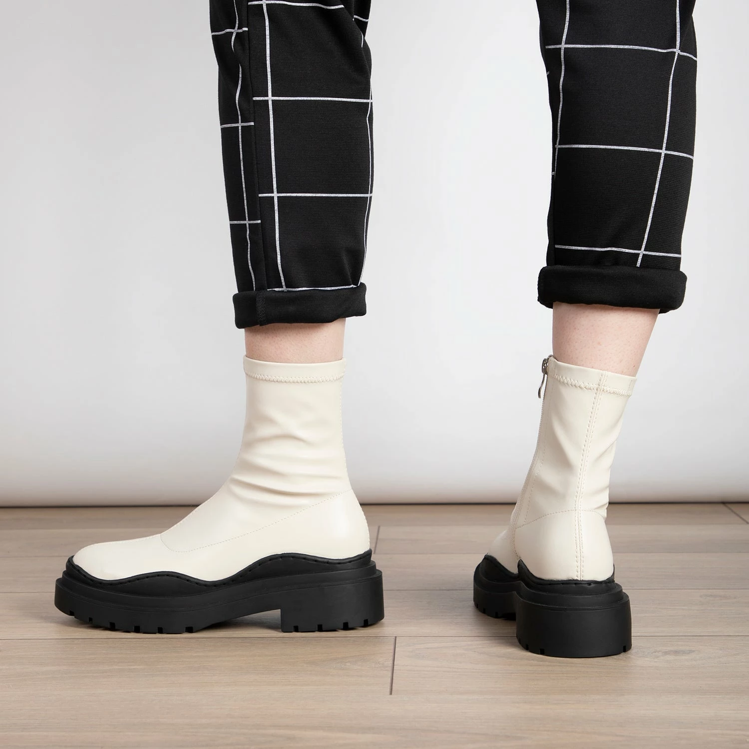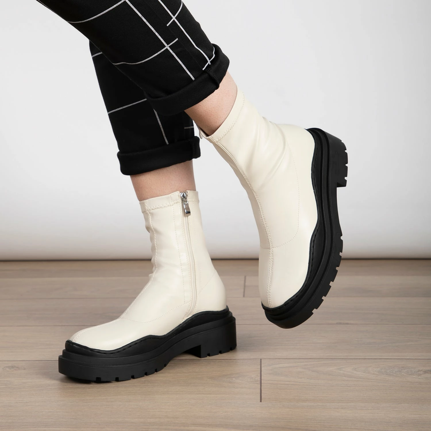 Take a bold step in the fashionable RAID Aleesha Chunky Ankle Boot! It features black sole and white upper designed to give you an edgy, trendy look. The understated everyday style of the boot will ensure you stay stylish and chic all day long.