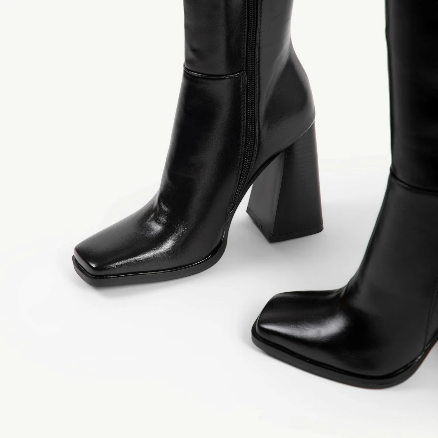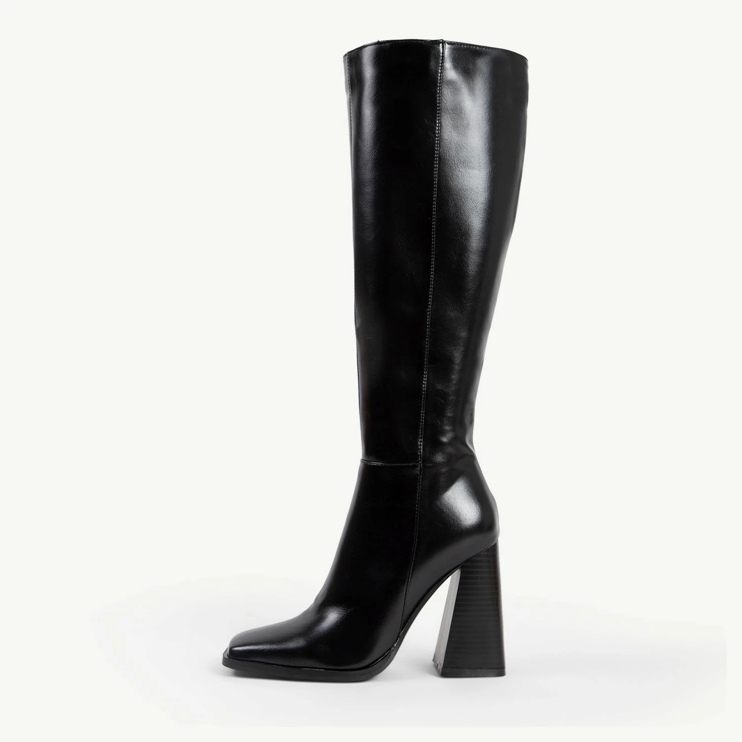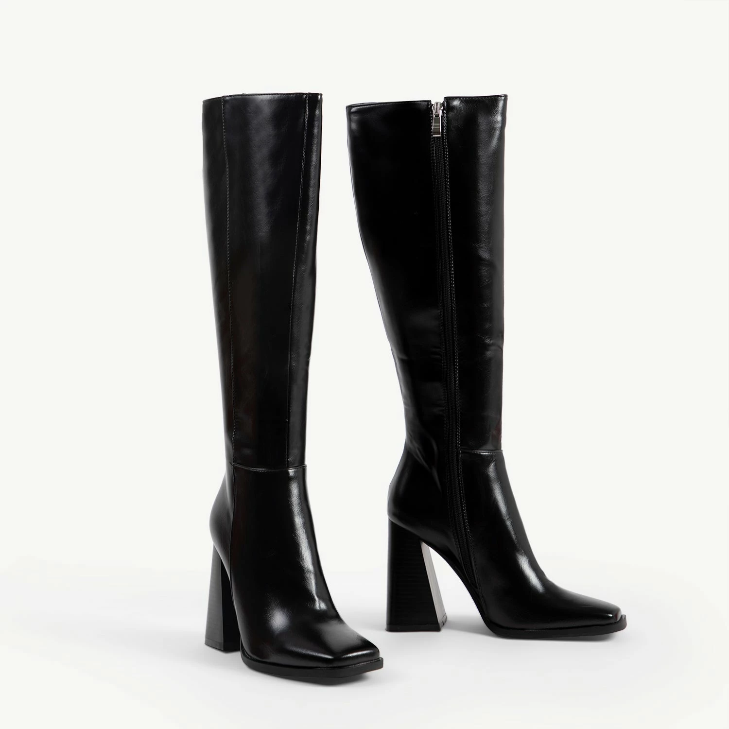 Step out in style with the RAID Analeah Block Heeled Boot. This sleek and sexy long boot is the perfect addition to modern style. With a modern heel and classic black colour, these boots will turn heads and keep you walking in style all night long. Make a statement with the Analeah Boot!