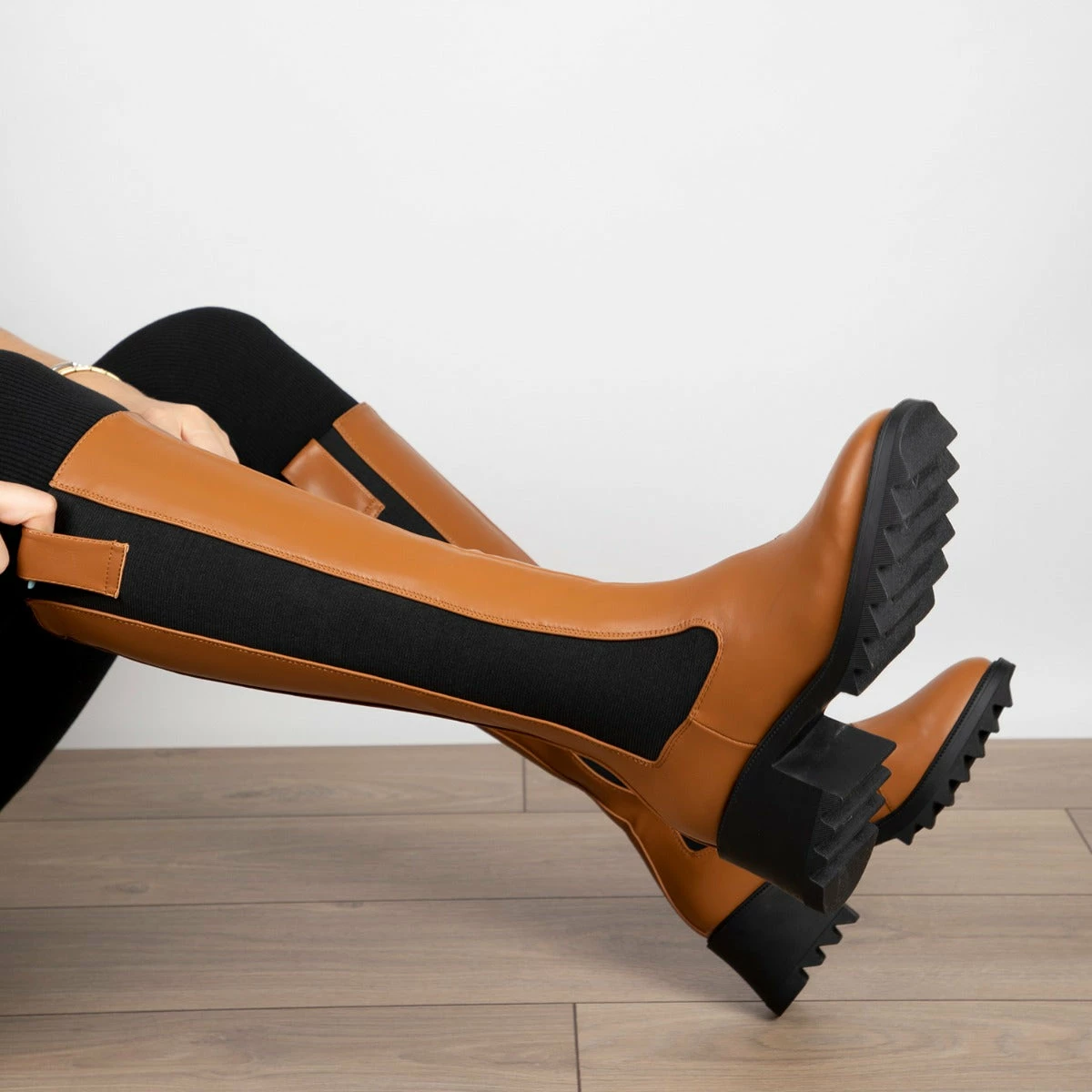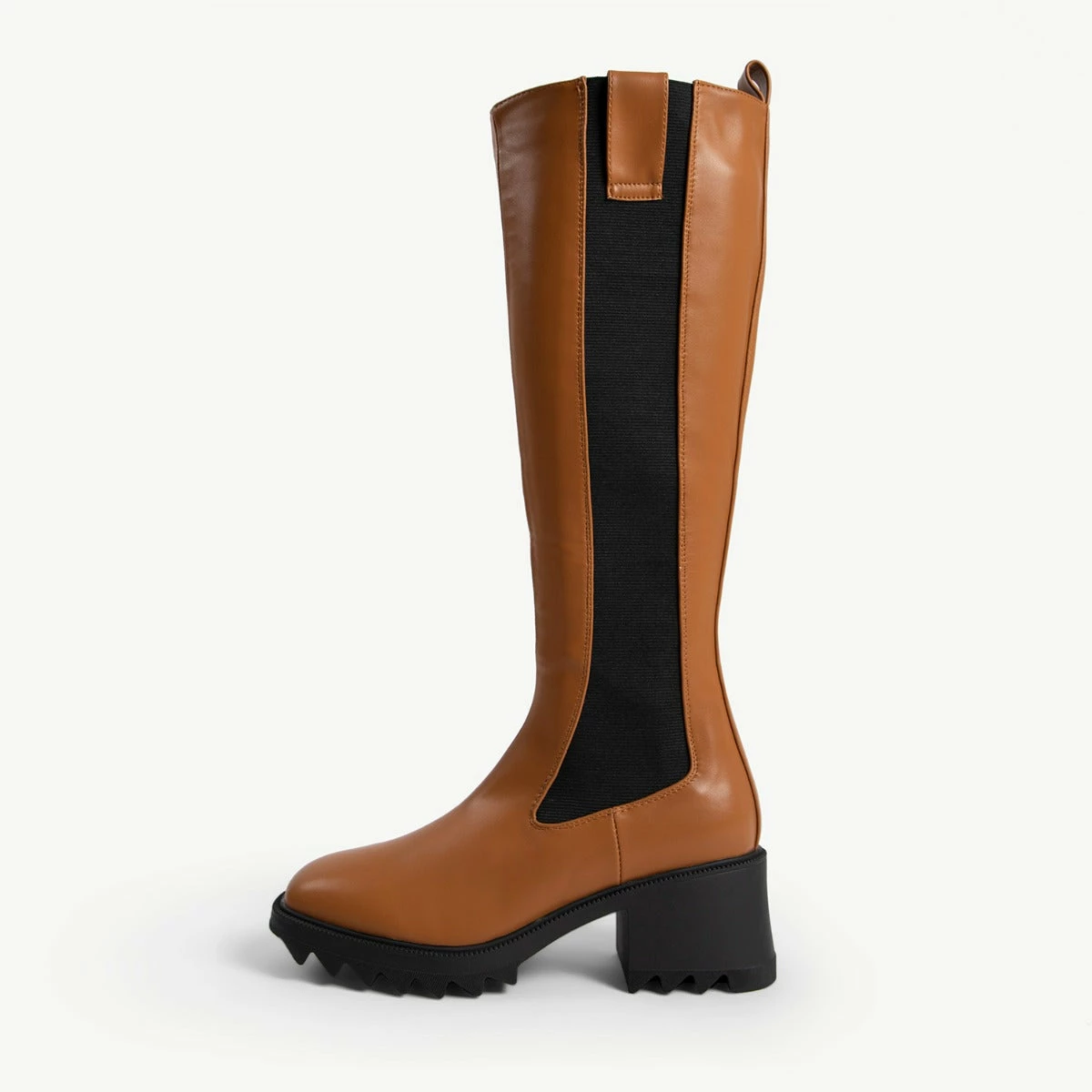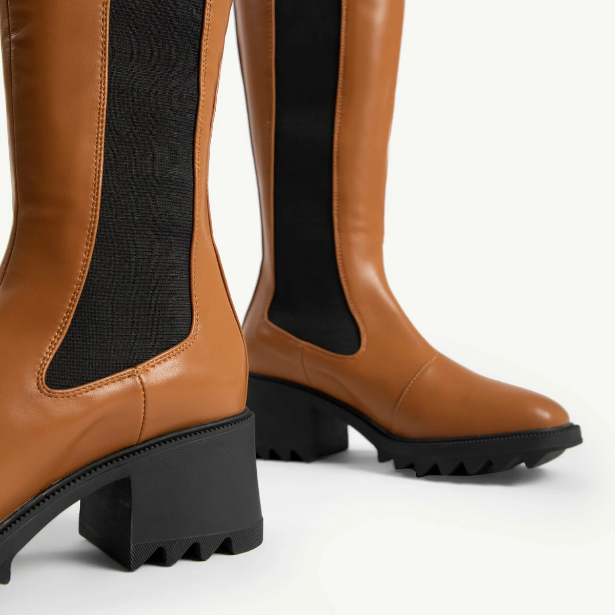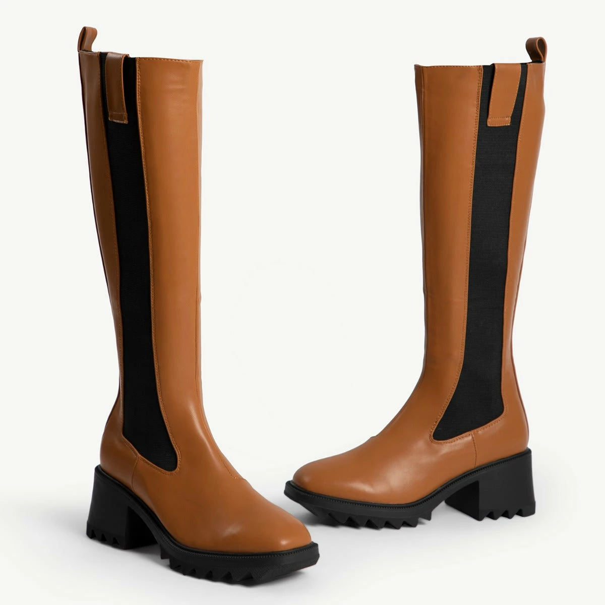 Step into timeless style with the RAID Annabel Long Boot. Crafted in a beautiful tan hue with a black sole, these boots will have you looking chic with every step. Offering a comfortable block heel, your feet will be as comfortable as they are stylish. Elevate any outfit with this classic, must-have boot.