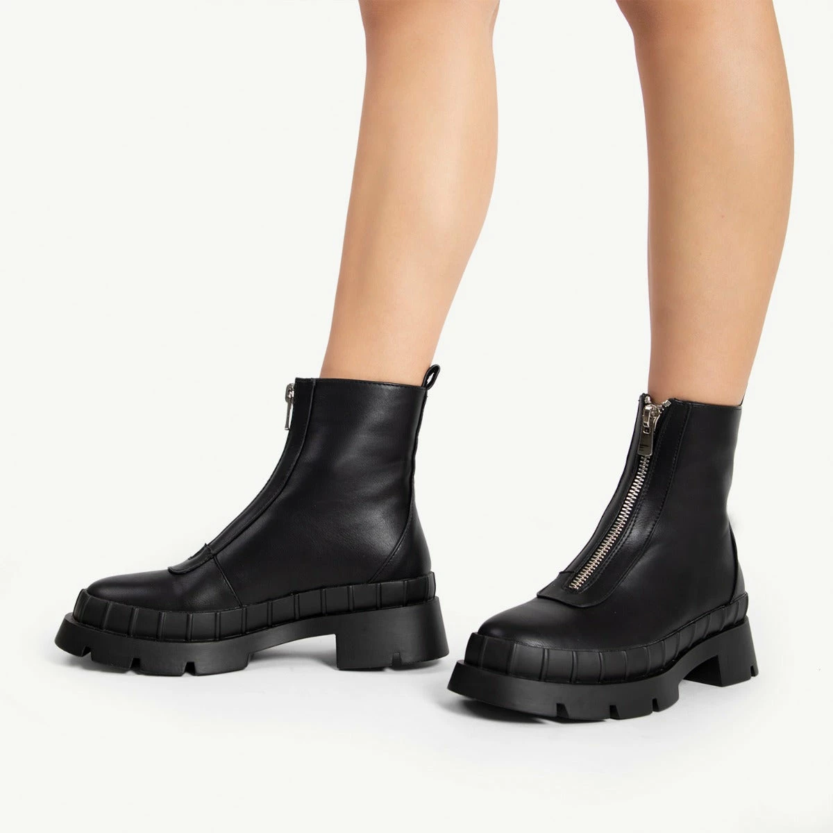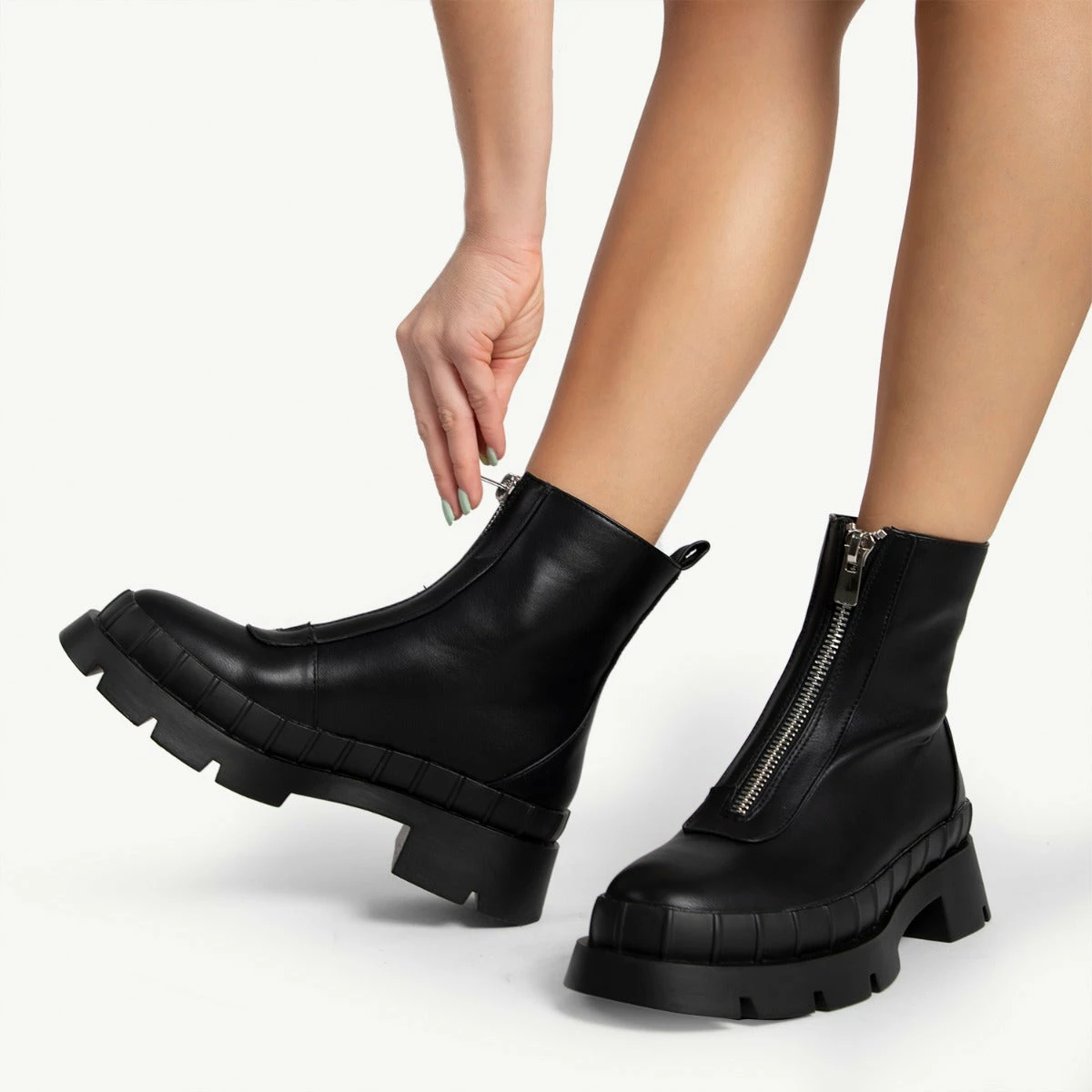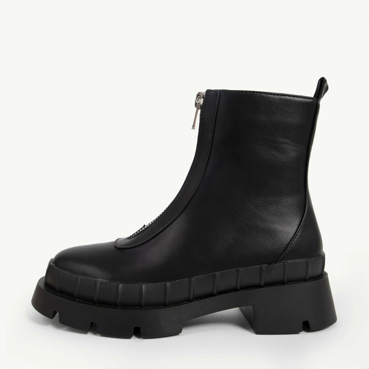 The RAID Annya Chunky Ankle Boot captivates in its sleek black design. Combining a chunky silhouette with a front zip closure, these boots will make you look and feel like a fashionista. Step out in style with the Annya Ankle Boot!