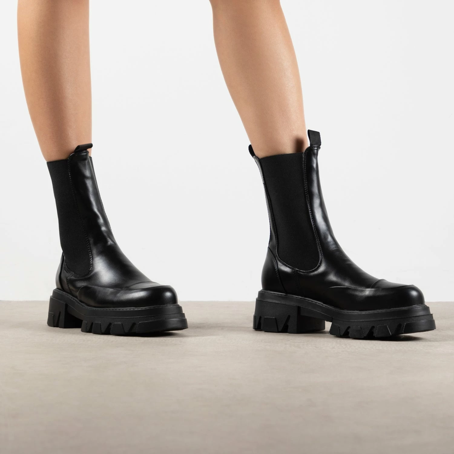Make a bold statement with the RAID Arivah Chunky Ankle Boot in Black! Featuring a chunky silhouette and sleek black colour, this daring boot will be the perfect addition to any outfit. Step out in style and make a lasting impression!