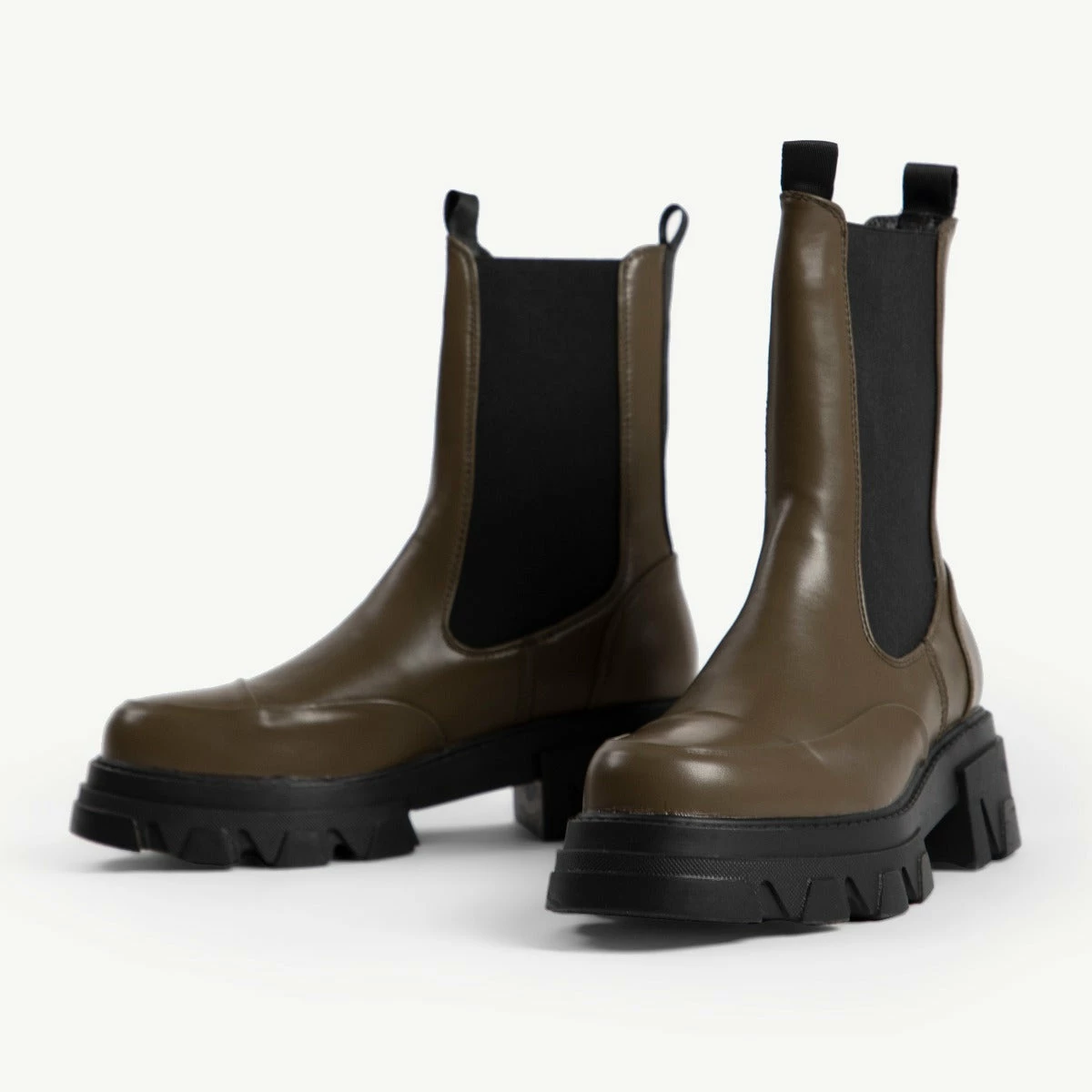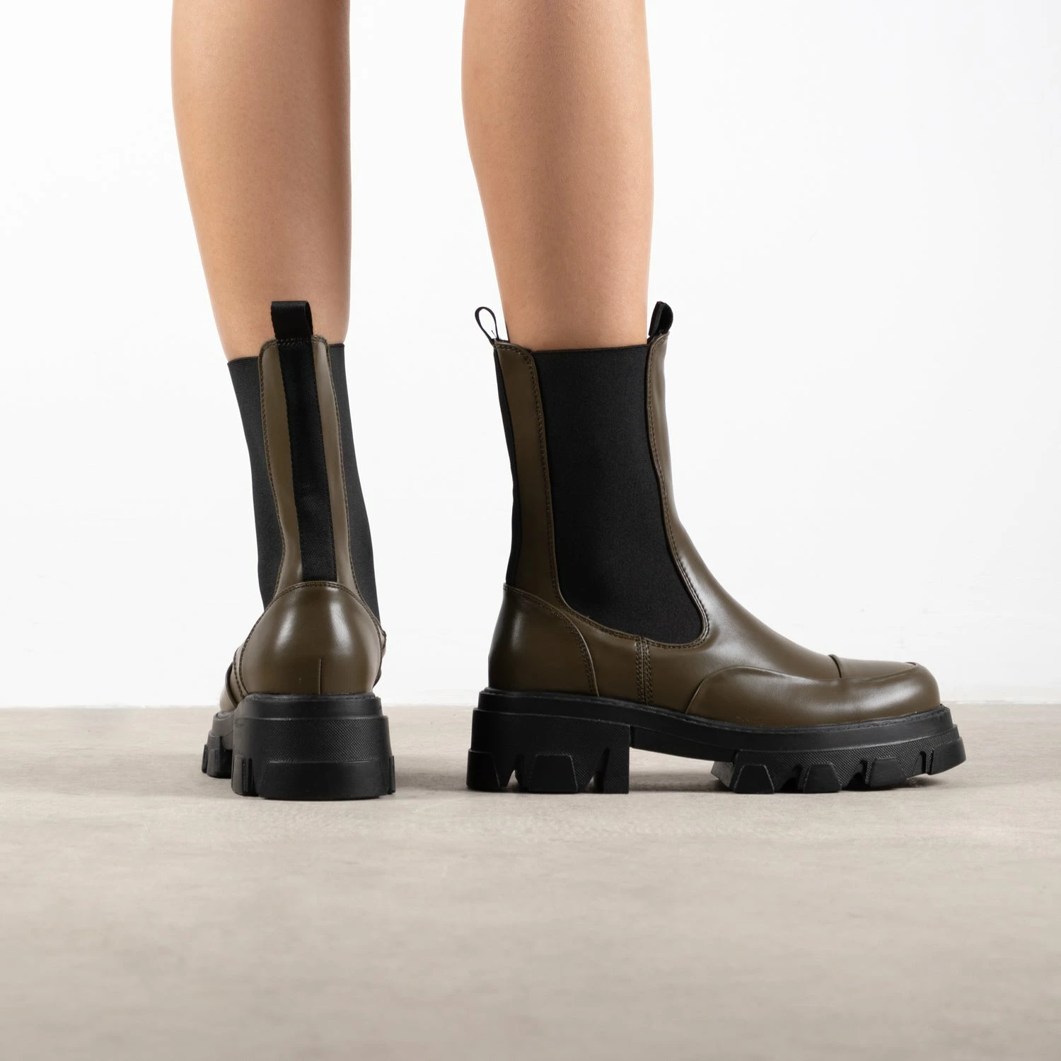 Bring fashion and function together with the RAID Arivah Chunky Ankle Boot. In sleek khaki and chunky silhouette, this boot is the perfect way to make a statement without sacrificing comfort. Step out in style and feel confident!