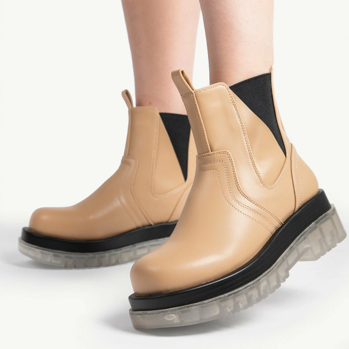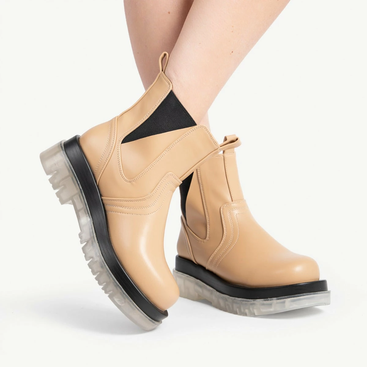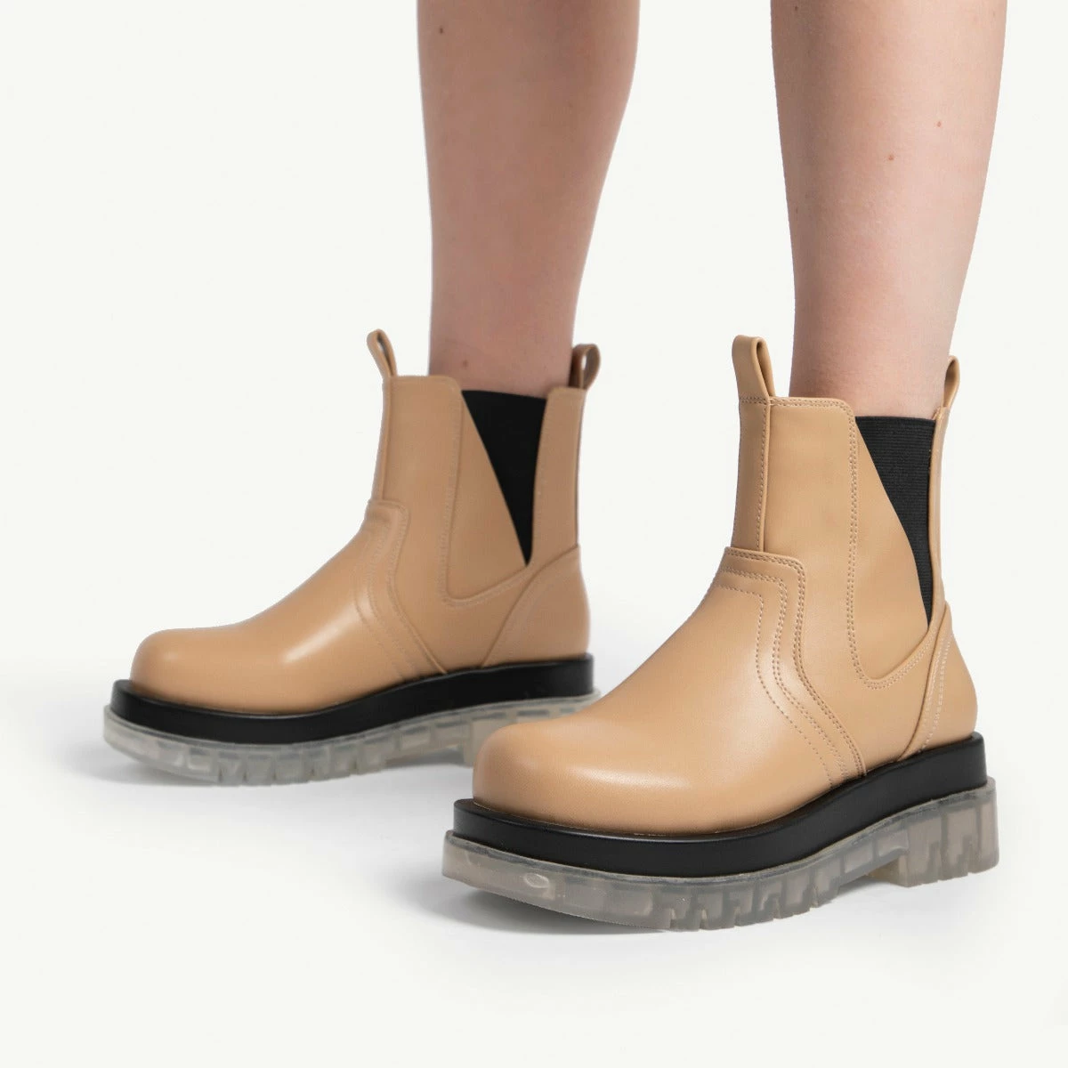 Step out in style in the RAID Brazen Clear Sole Ankle Boot. Crafted with an eye-catching camel upper and a chunky clear sole, this modern boot will be the perfect complement to any outfit. With its contemporary style, you’ll confidently turn heads. Be bold and make a statement!