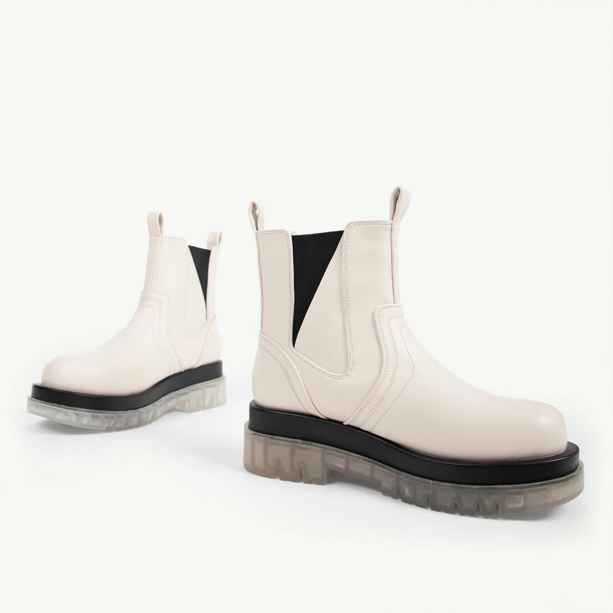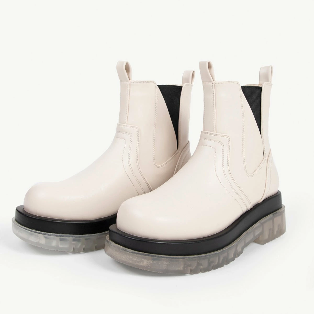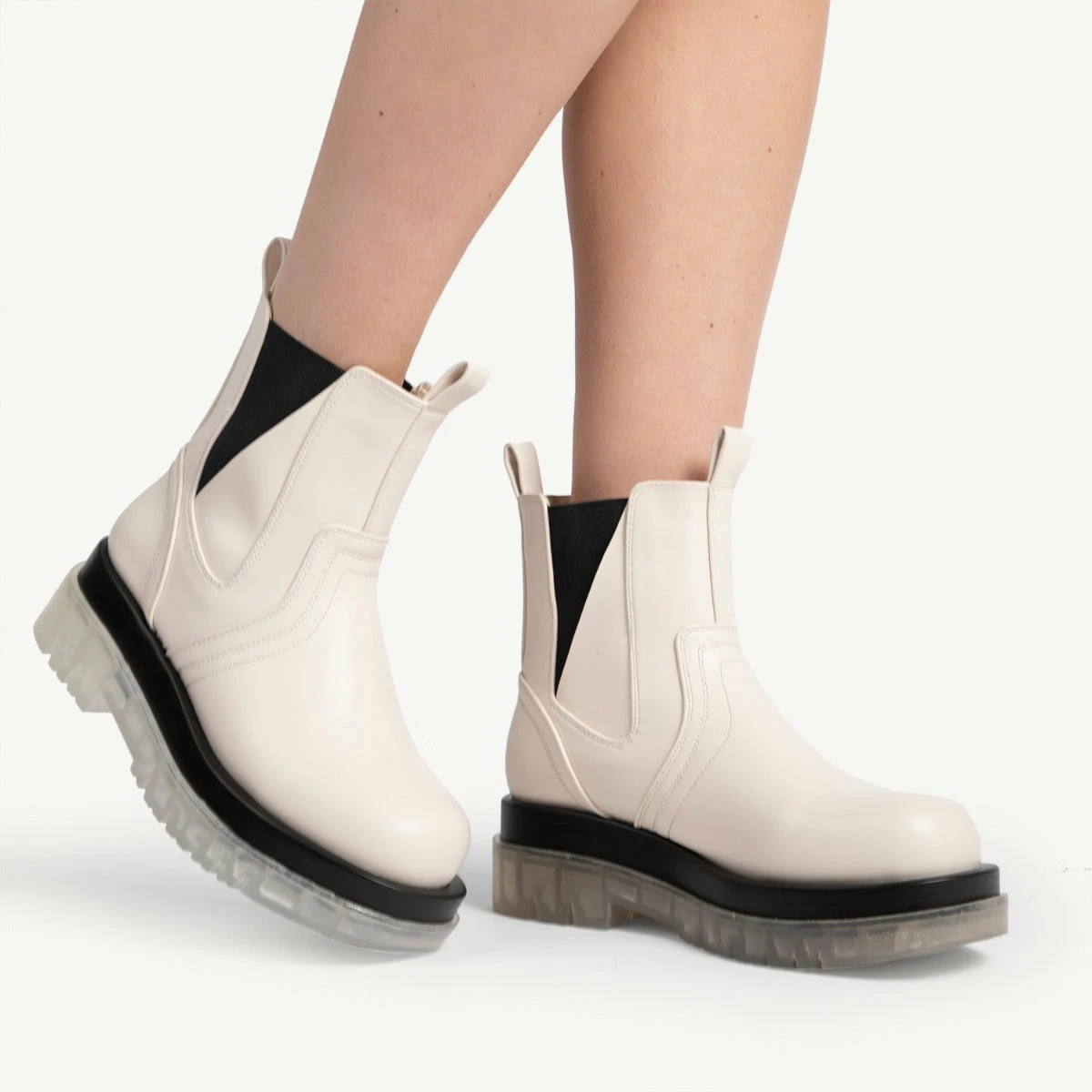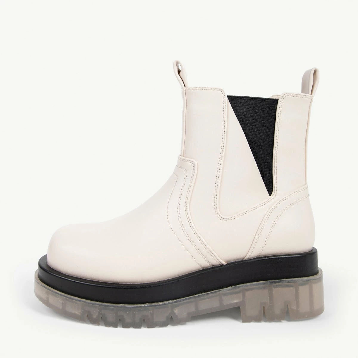 Experience fashion-forward style with the RAID Brazen Clear Sole Ankle Boot! Featuring a white upper and a clear sole, this chunky boot is perfect for making a bold statement. Stand out effortlessly and bring an elevated look to your wardrobe. What’s not to love?