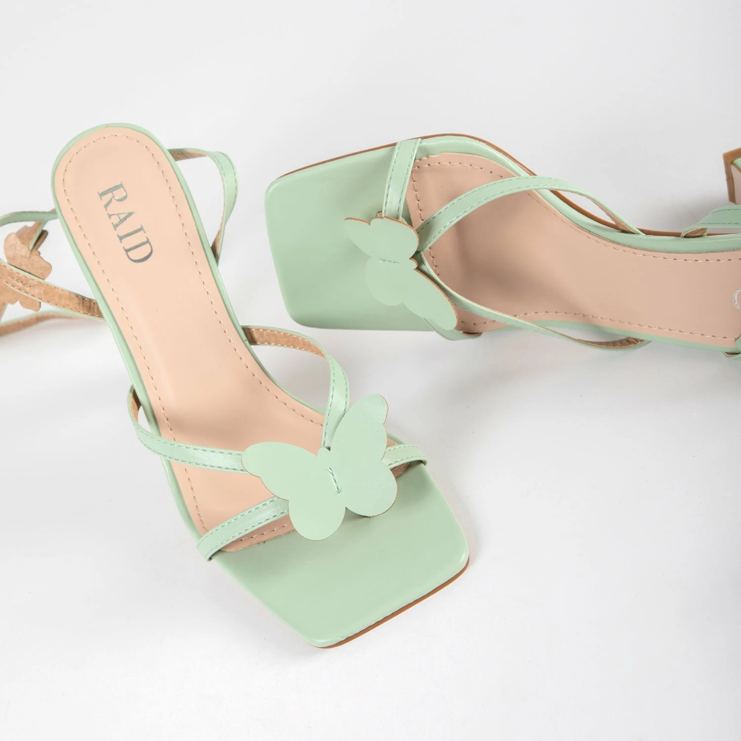 Discover beautiful style in the RAID Brevyn Heeled Sandal! An ever-chic mint hue, playful butterfly design, and an elegant heel combine for a stunning design. Enjoy secure and comfortable wear thanks to an adjustable ankle strap. Be the life of the party with the Brevyn!