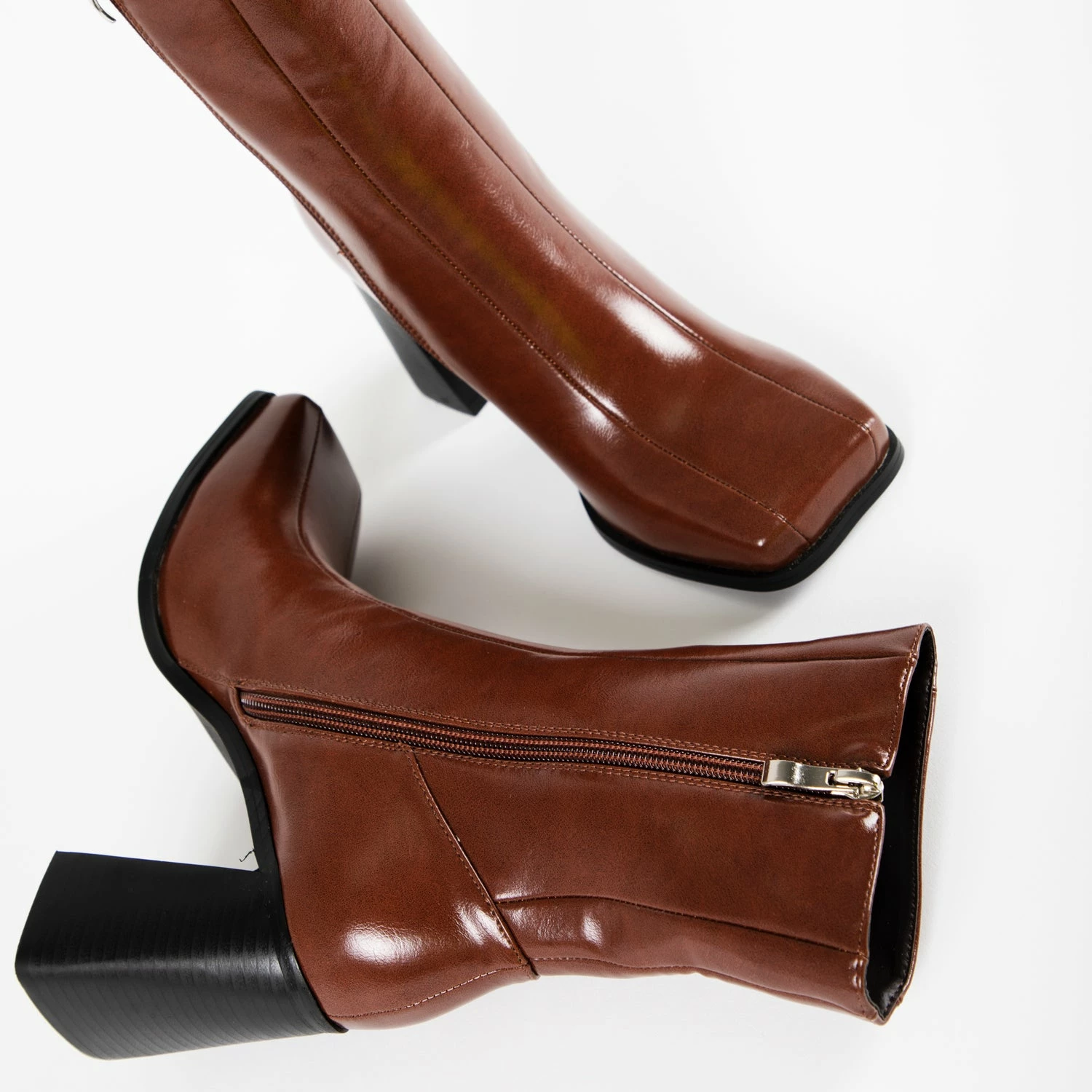 SKU: CMFPZ 7488447283355 Categories: Block Heeled Boots, Boots Tags: Autumn Essentials, AW22, Back In Stock, Block heel, Block Heeled Boots, Block Heels, Brown, Brown boot, Chocolate, Chocolate boot, Classic, Colour_brown, Date night, Day boot, Day boots, Evening boot, Everyday, Ffa, GDS, High ankle boot, Lc, Mid block, Mid block ankle boot, Mid block heel, Mothers day, Neutrals 1, New, Newin, Night out, Slim heel, Sock boot, Square toe, Square Toes