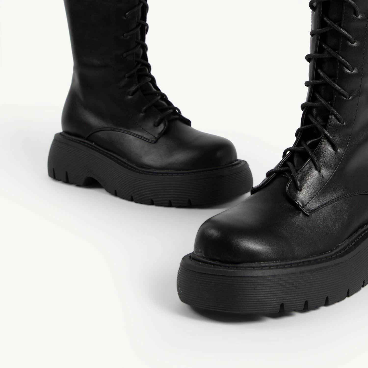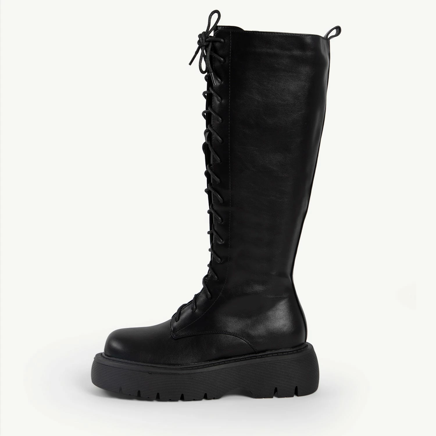 The RAID Colira Long Boot in Black is the perfect combination of edgy style and comfort. This knee-high combat boot gives you an impressive silhouette with its lace-up detailing and chunky rounded track sole. Take your look to the next level with these dynamic boots.