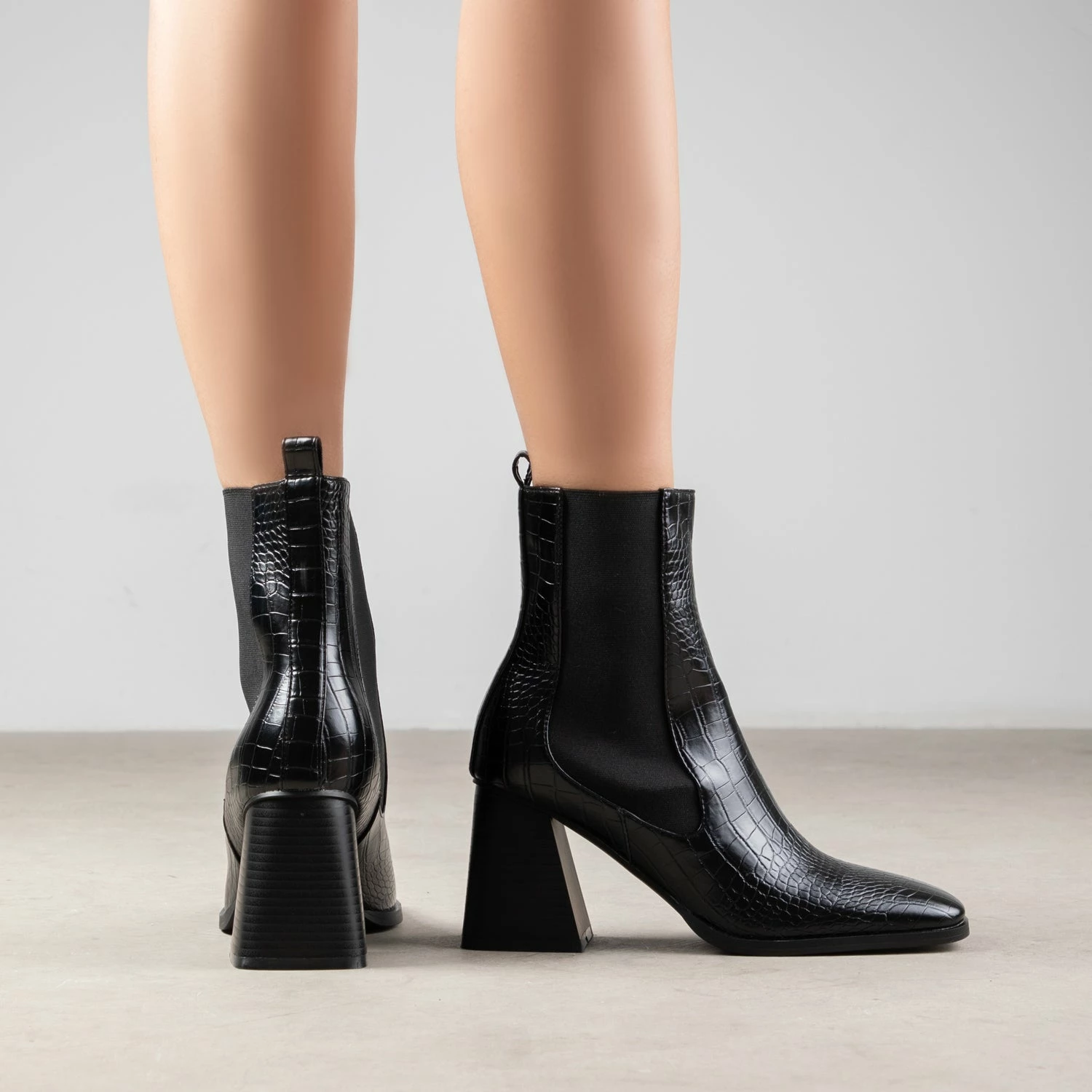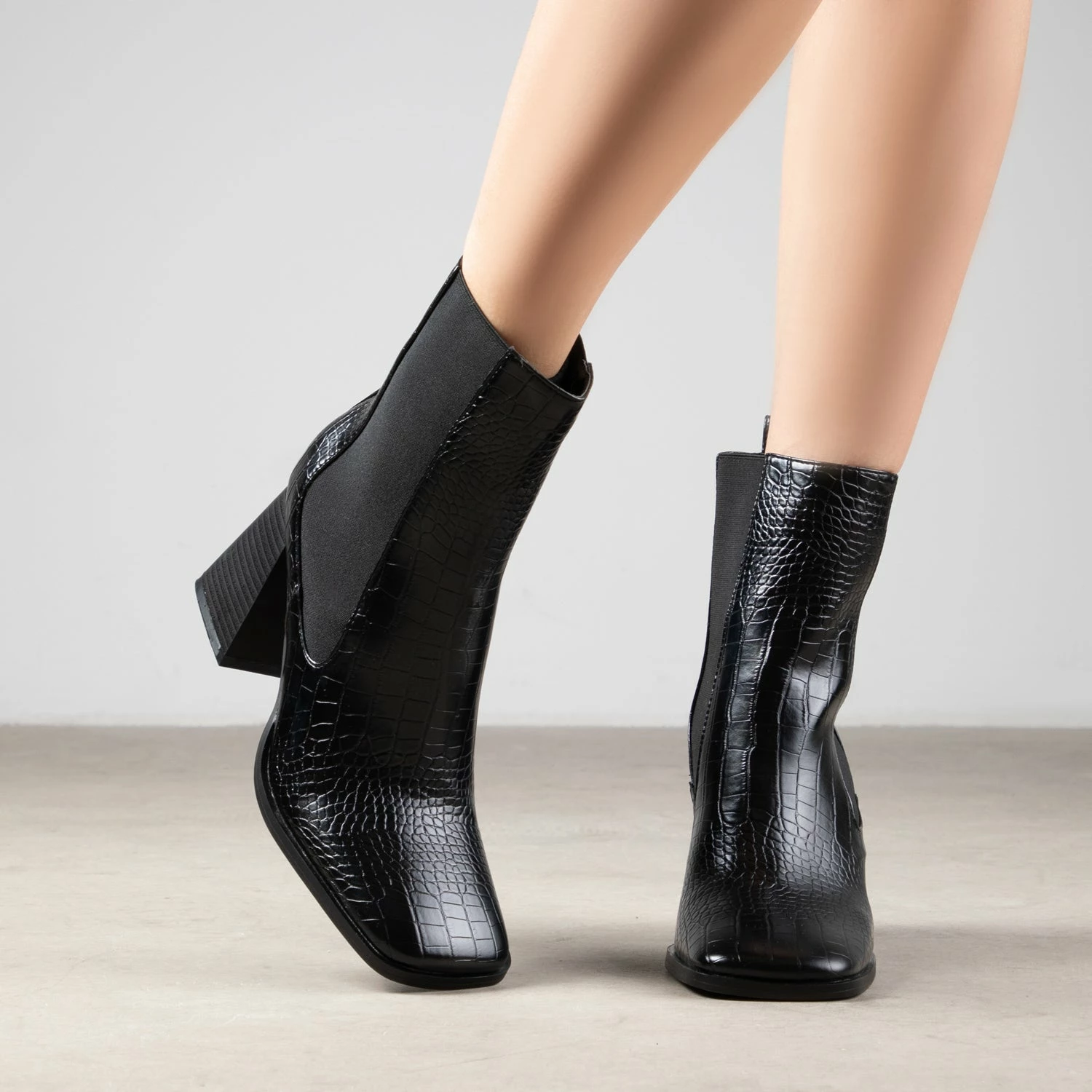 Be the first to review “RAID Constant Block Heeled Ankle Boot In Black Croc” Cancel reply