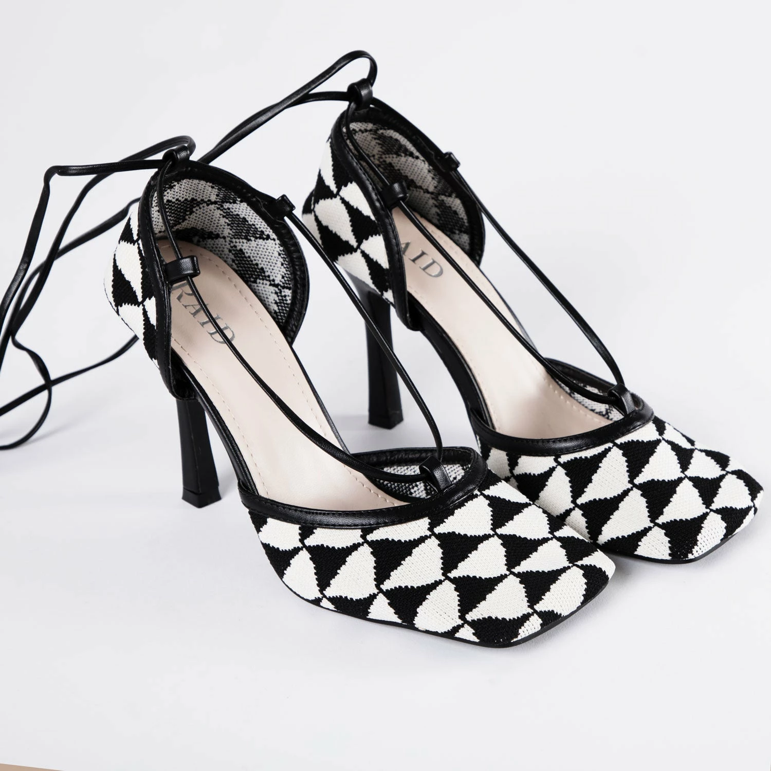 Be effortlessly stylish and make a statement in our RAID Cornell Heeled Pump. Crafted with a sleek black and cream knit design, this pump features a stiletto heel, a lace-up design, and a blocky print that is sure to turn heads. Step into confidence and be the star of the show!