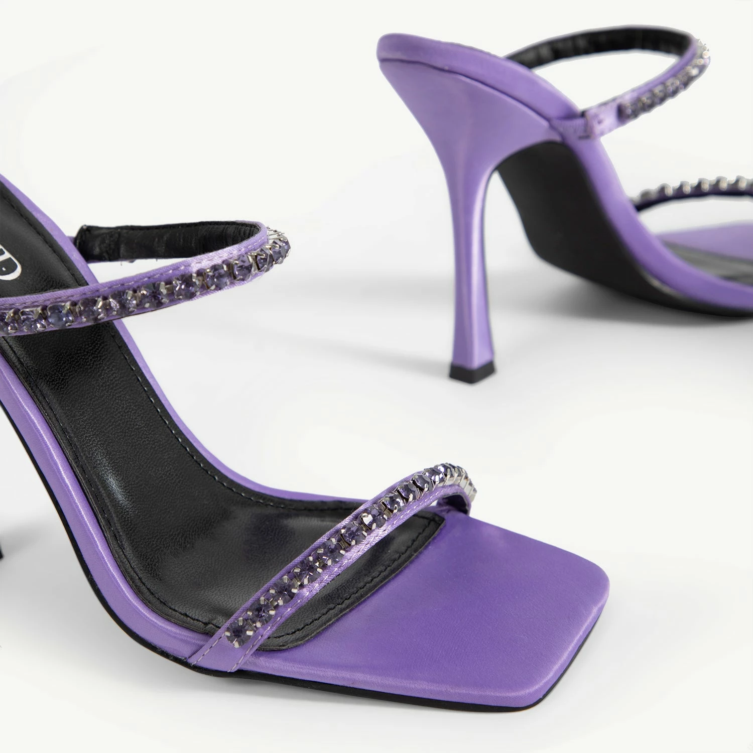 Stand out from the crowd with these statement RAID Deena Heeled Mules in eye-catching purple. Boasting purple diamante straps for a touch of sparkle, this mule will have you looking and feeling glam all day long. Dare to dazzle!