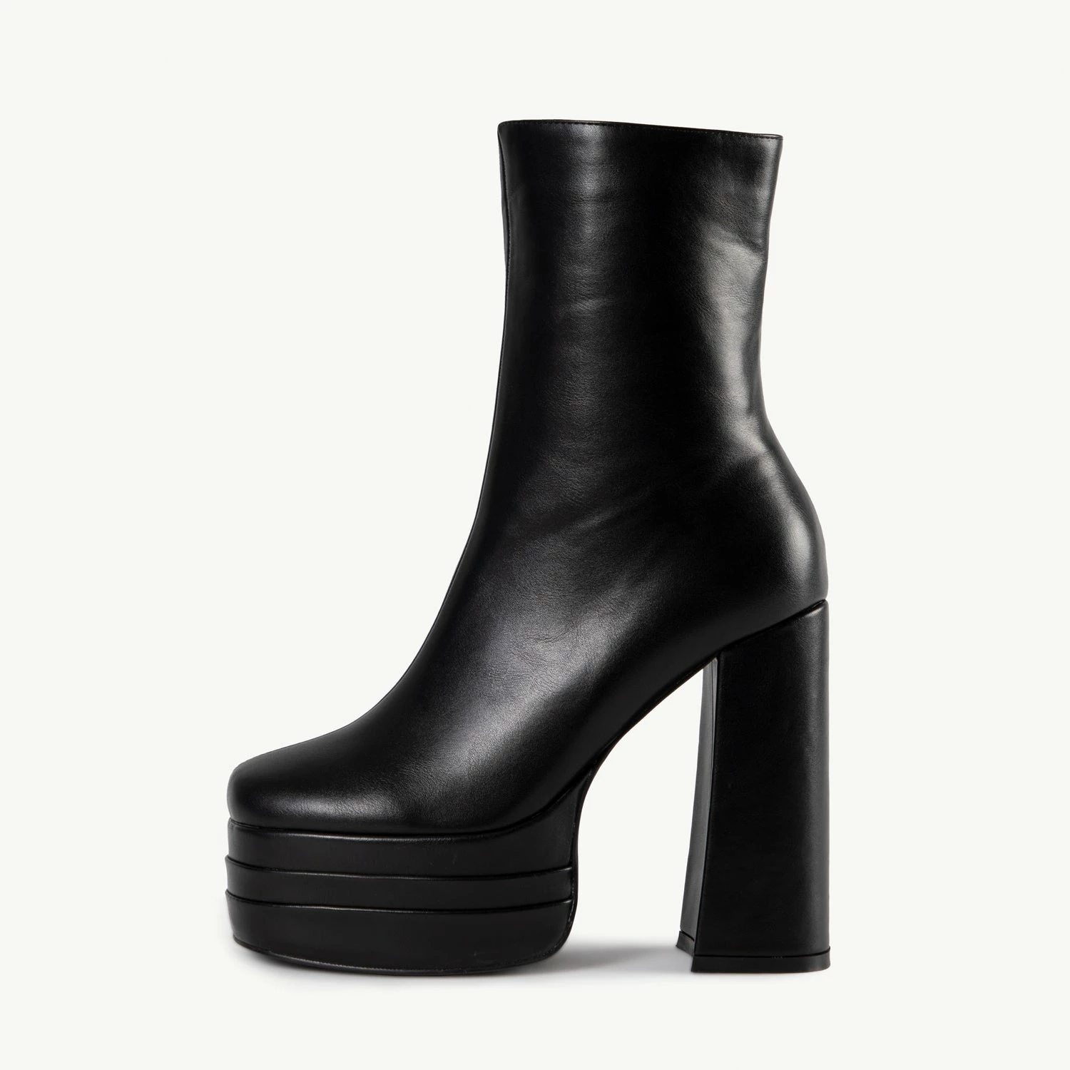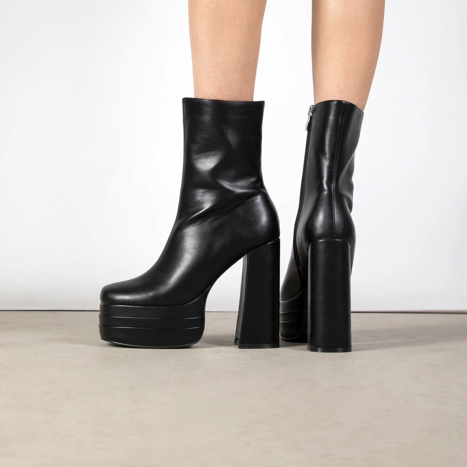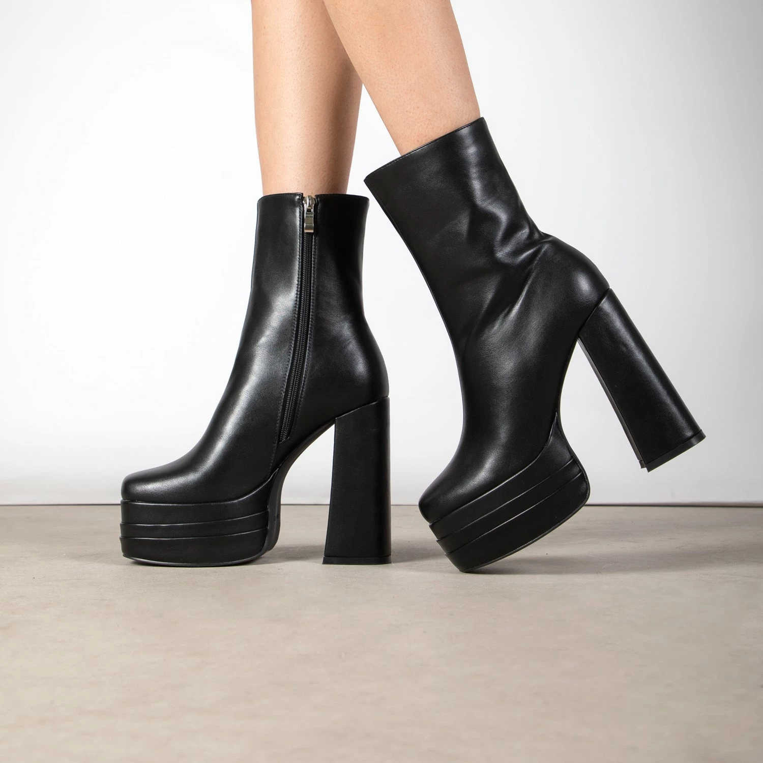 Take your style to new heights with the RAID Emely Platform Ankle Boot in Black. Its sturdy platform adds a contemporary feel to your look, while the classic black hue makes it easy to pair with almost anything. Step out in style with this bold and versatile boot.