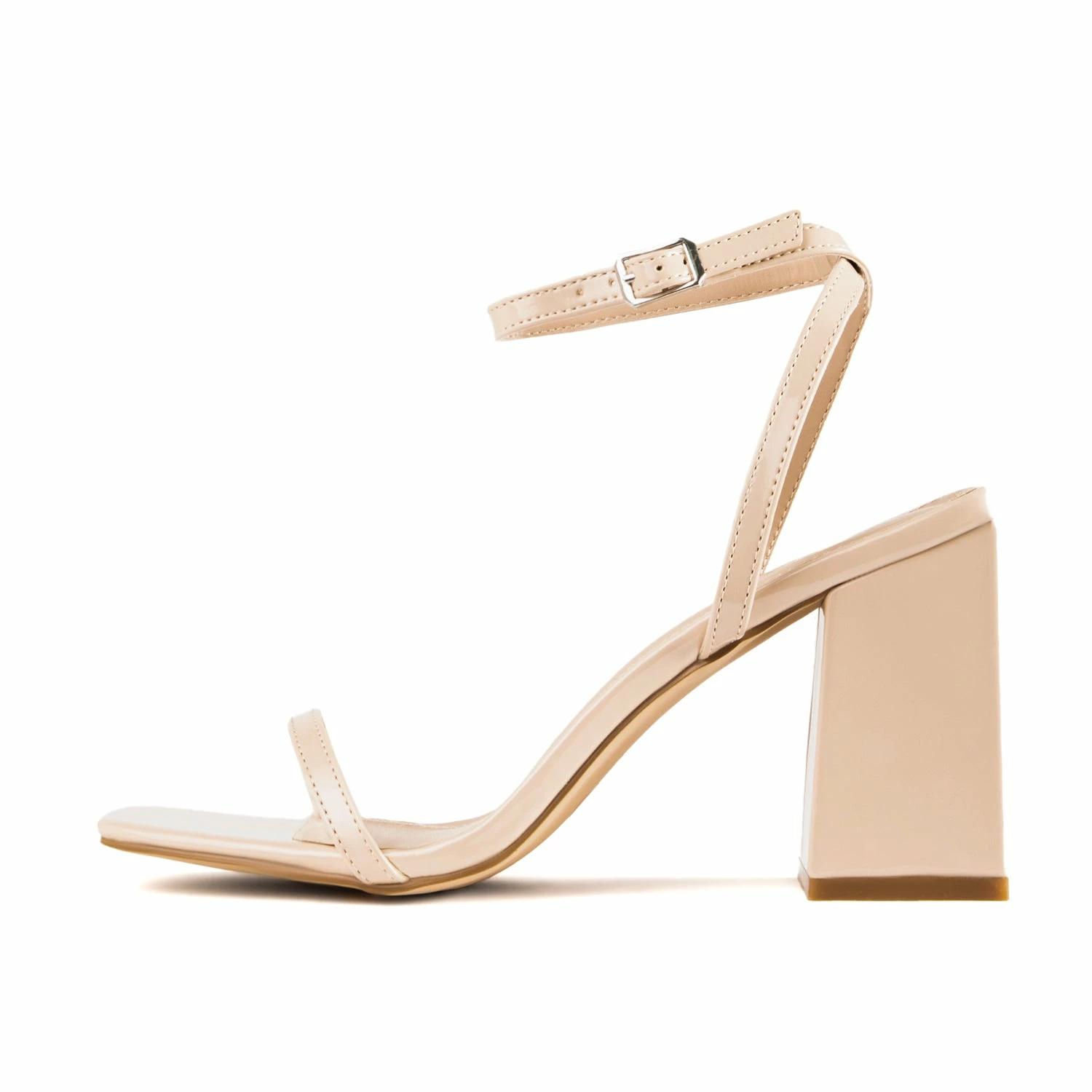 Step out in style with the RAID Garry Block Heel Sandal in Nude Patent. The minimal design, featuring an ankle strap and block heel, makes for an effortlessly chic look that’ll take you from day to night. Experience the allure of nude patent leather and make an unforgettable impression.