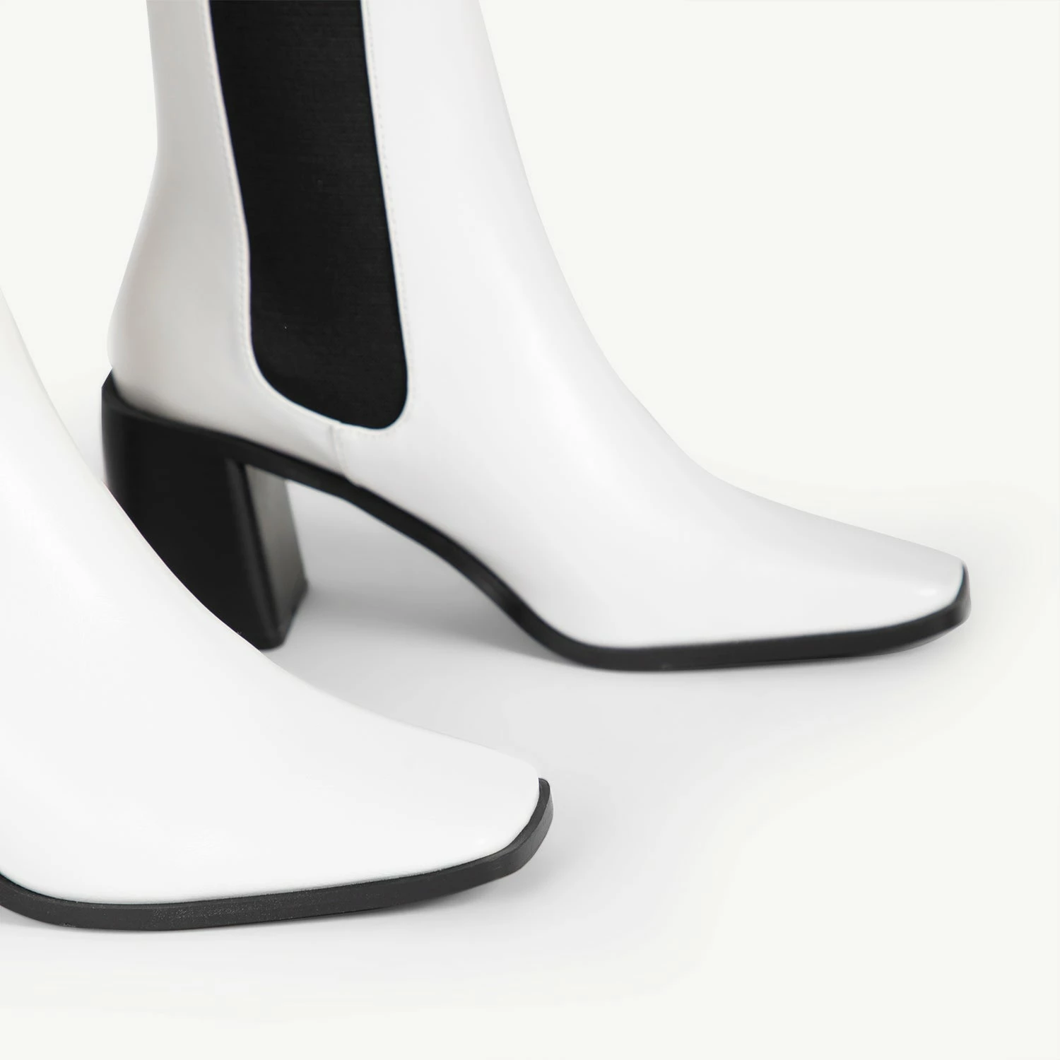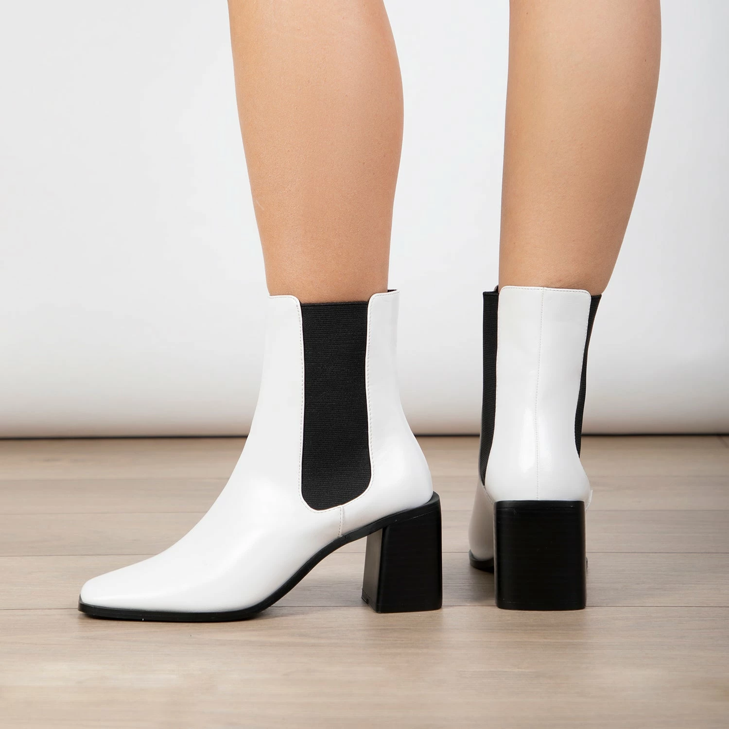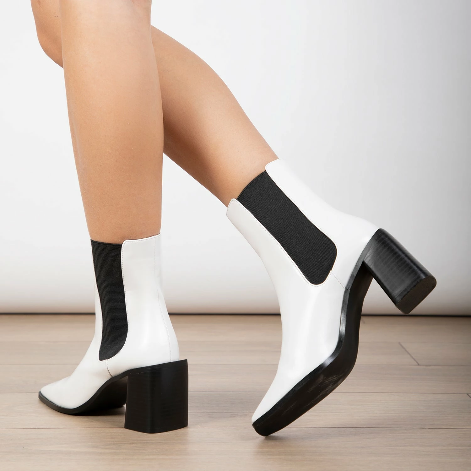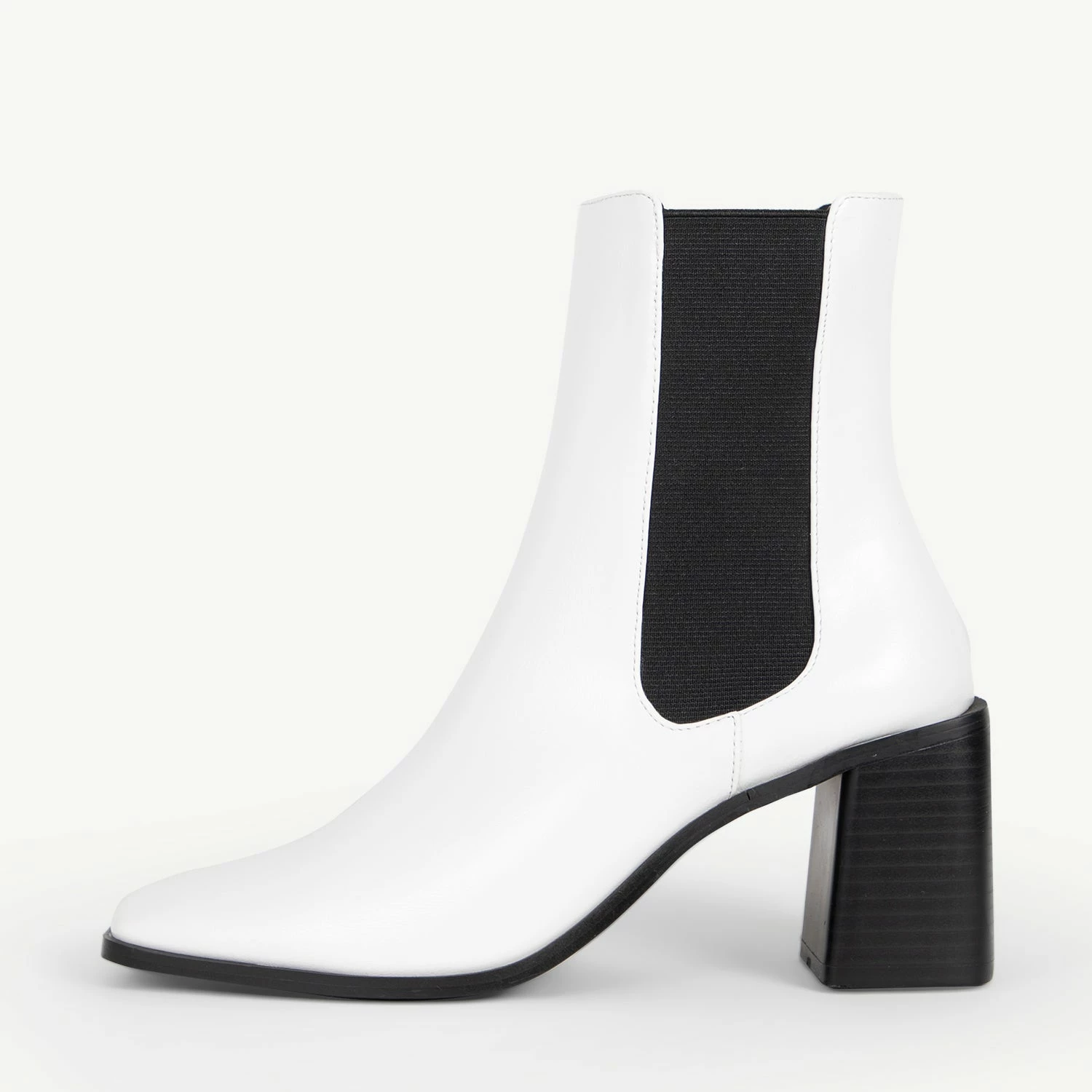 Stride boldly with the RAID Kennedi Ankle Boot, a must-have this season. Its classic white upper and black detailing will turn heads, while its block heel ensures comfort with every step. Make a fashion statement with this timeless piece!