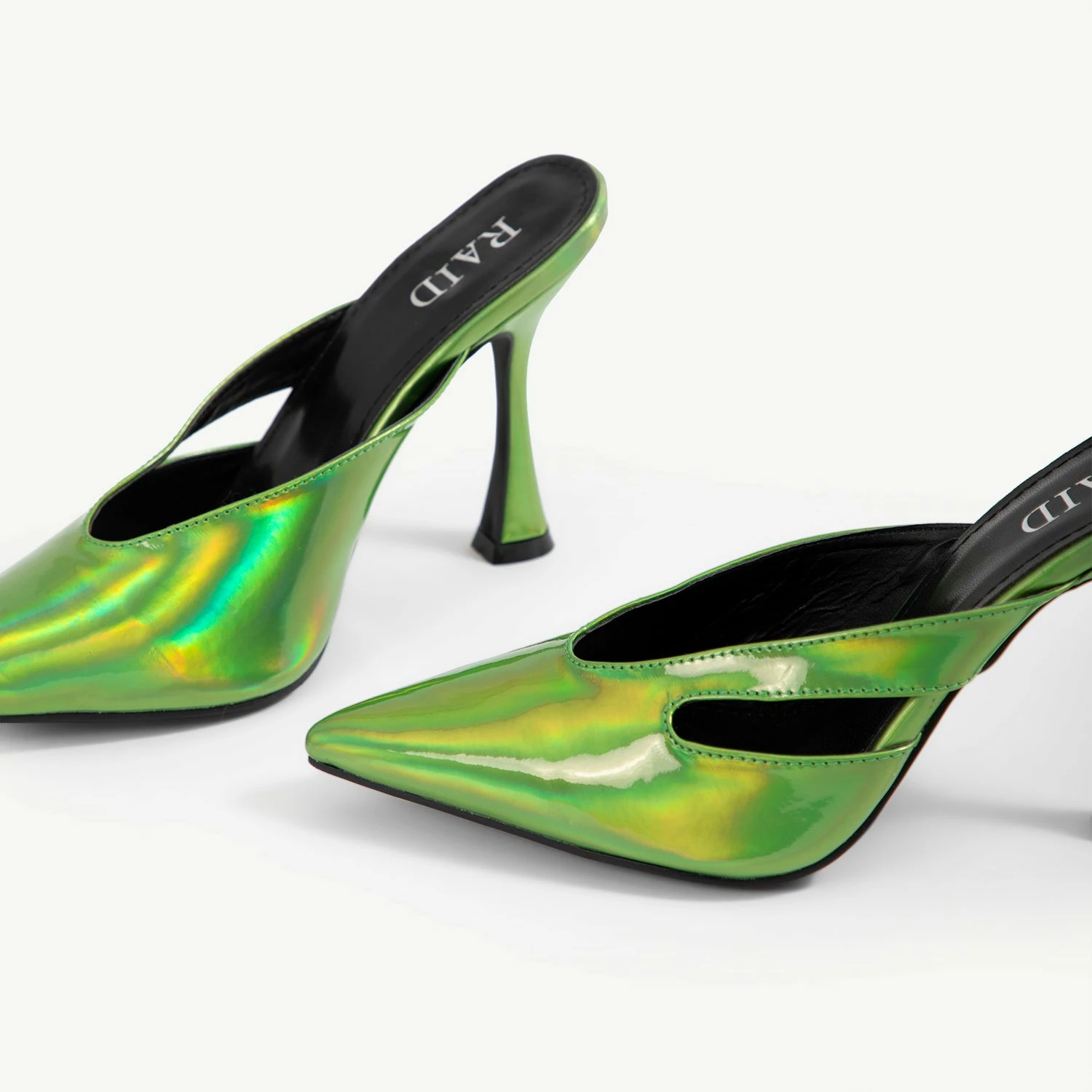 Be the first to review “RAID Kinsley Heeled Mule In Green Holographic” Cancel reply