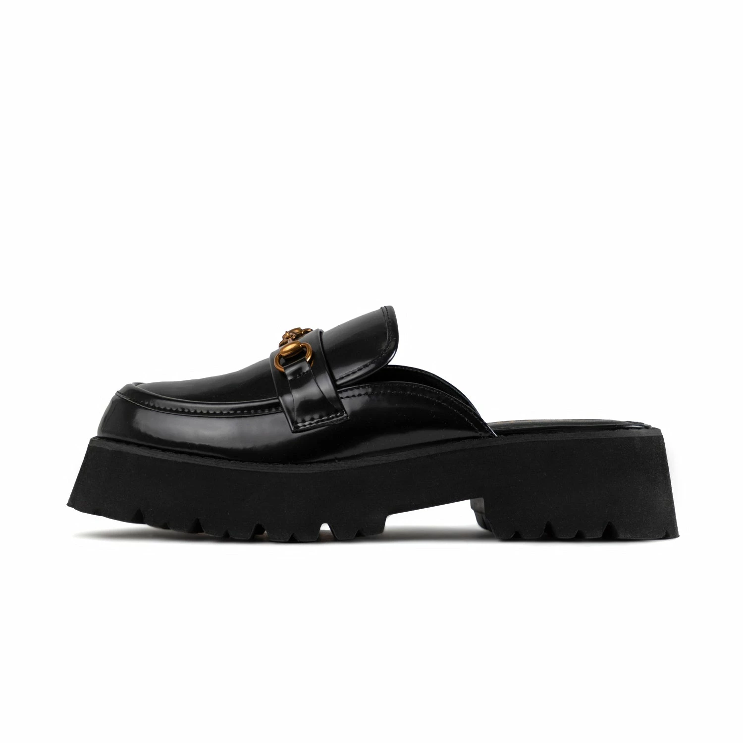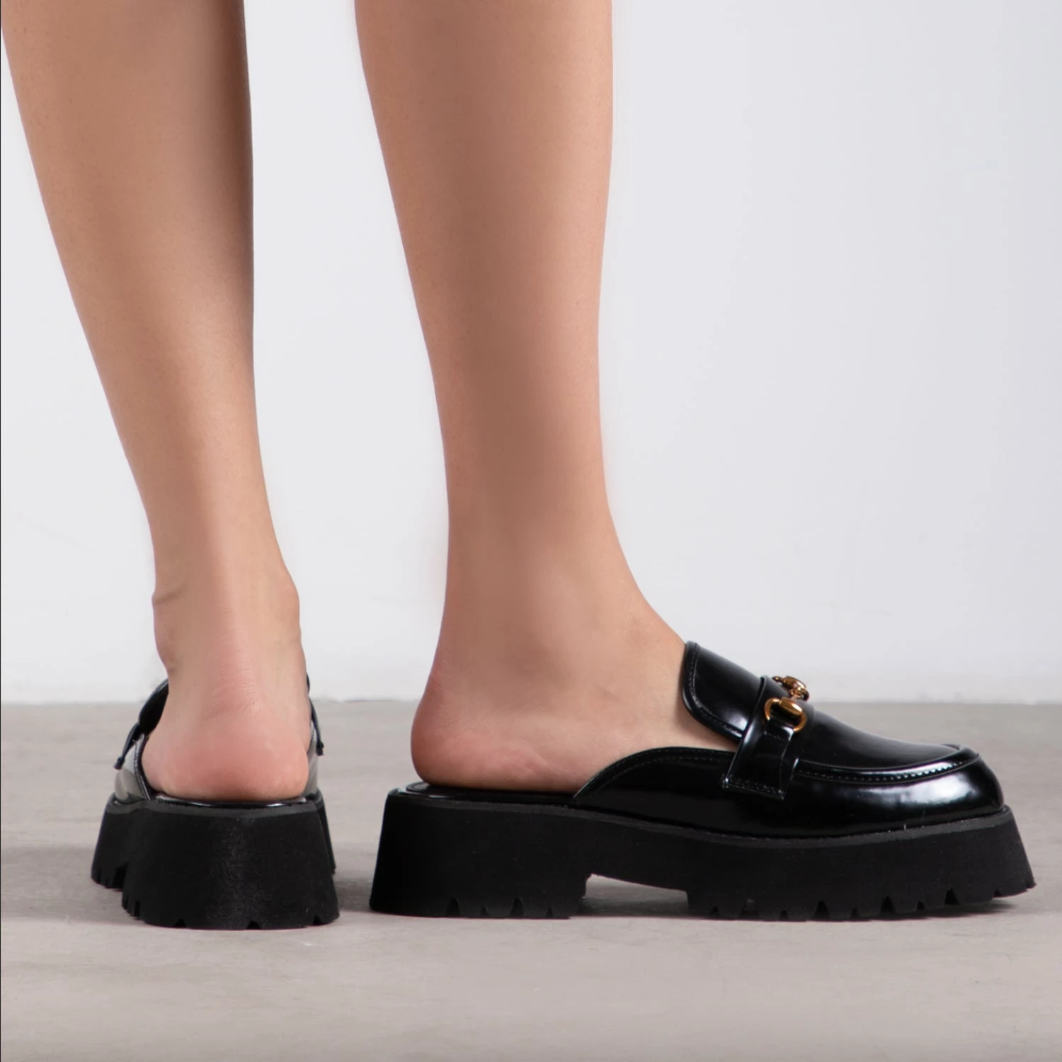 Step out in style with our RAID Lidia Loafer Mule! Featuring a striking design with gold detailing, this mule serves up an edgy twist to your look. Push boundaries with this modern pair, and take your style to new heights.