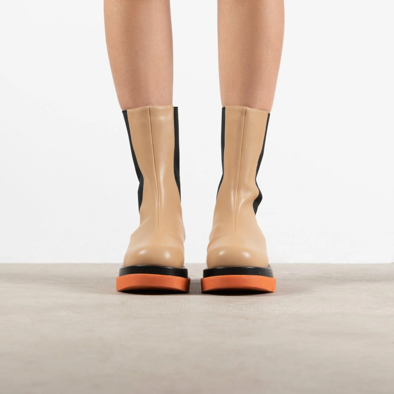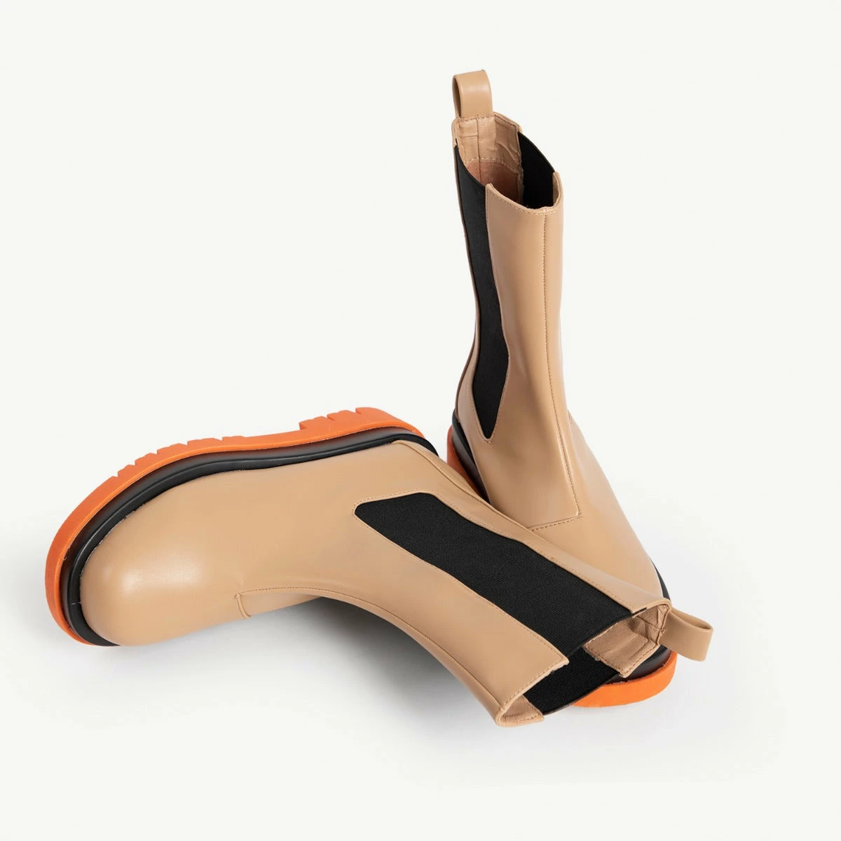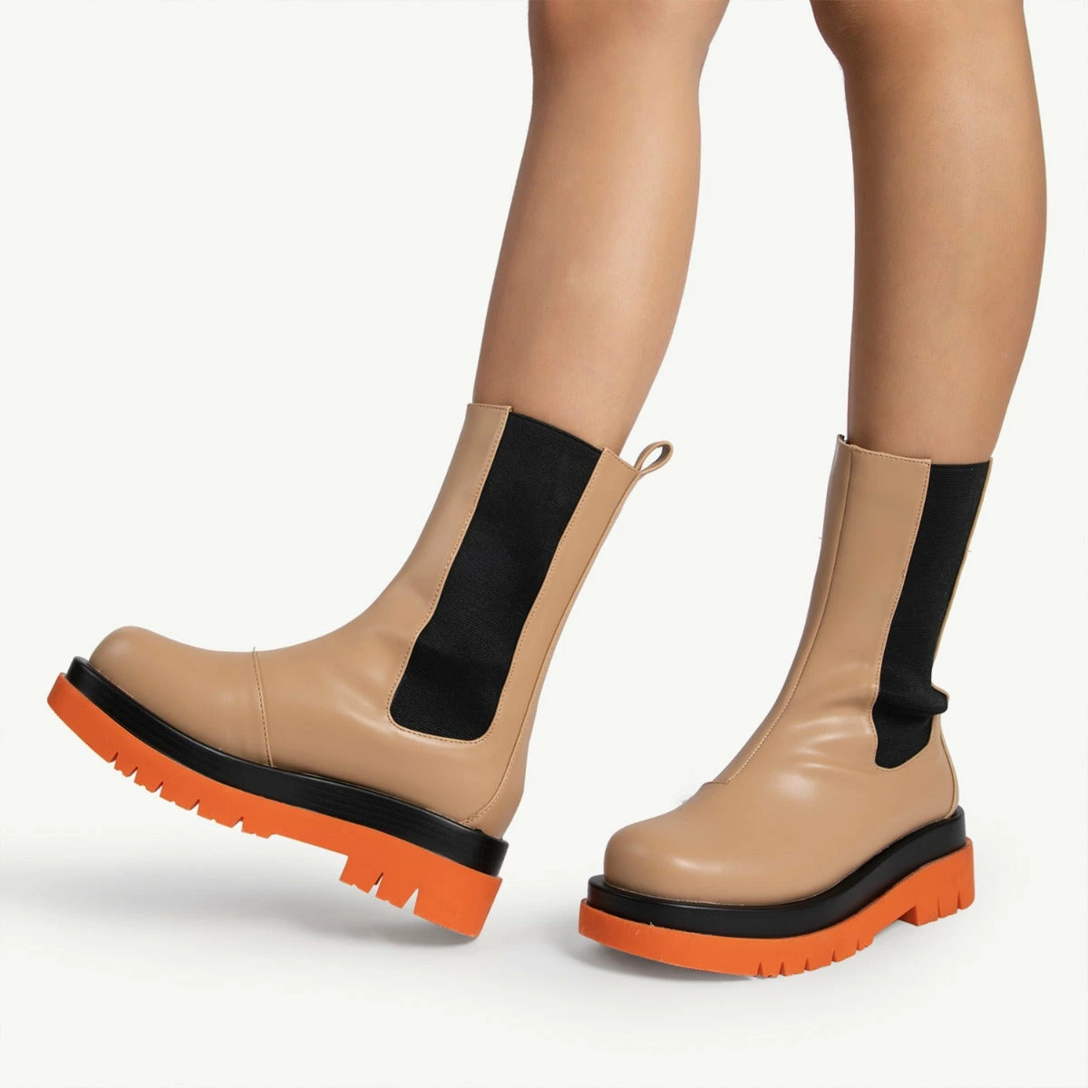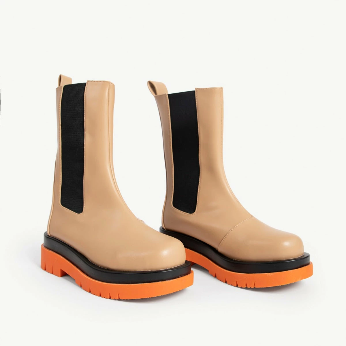 Make a statement wherever you go in the RAID Neville Chunky Boot! This gorgeous chunky boot stands out with its striking orange sole and smooth camel finish. Perfect for both work and play, this timeless style will see you through the season in comfort and style!