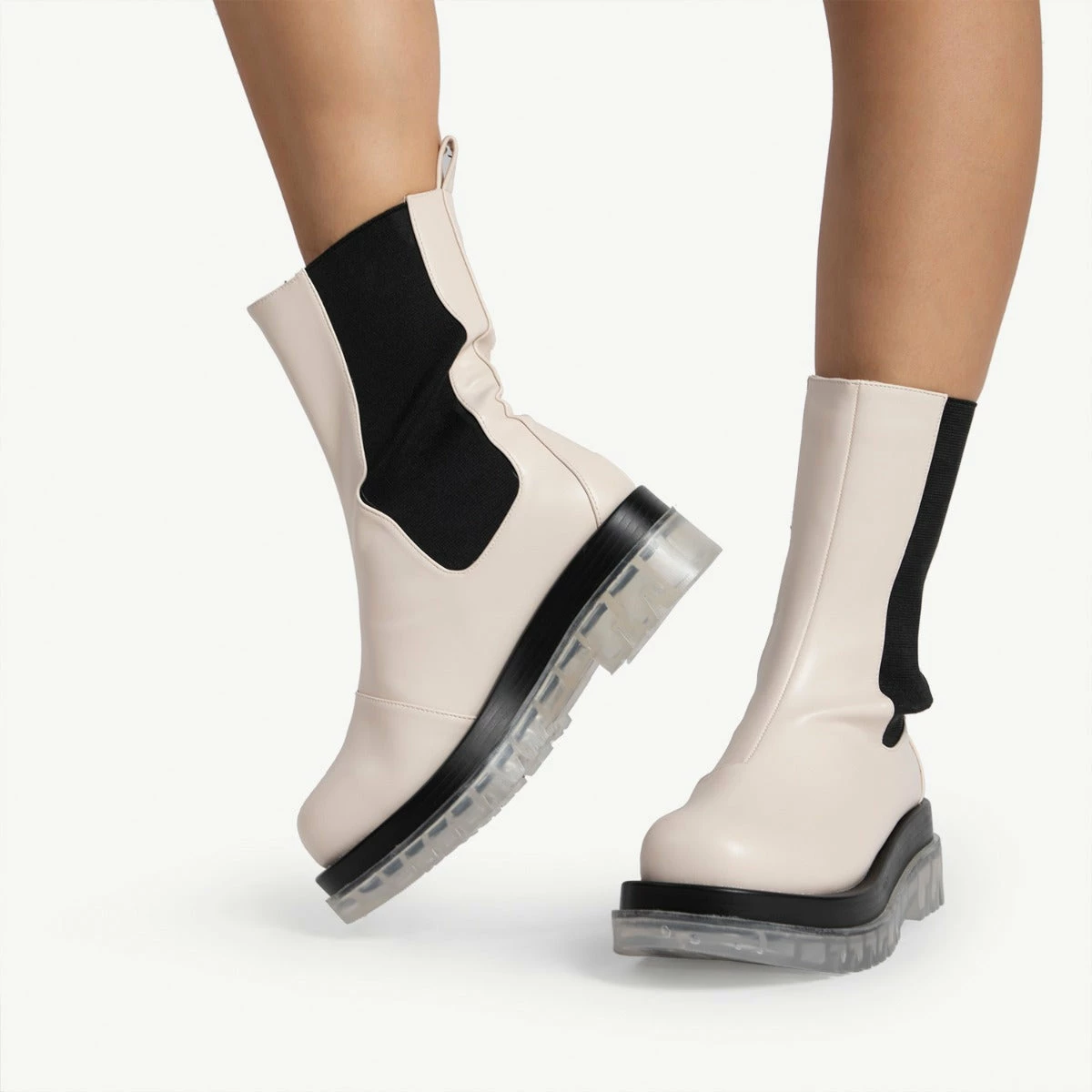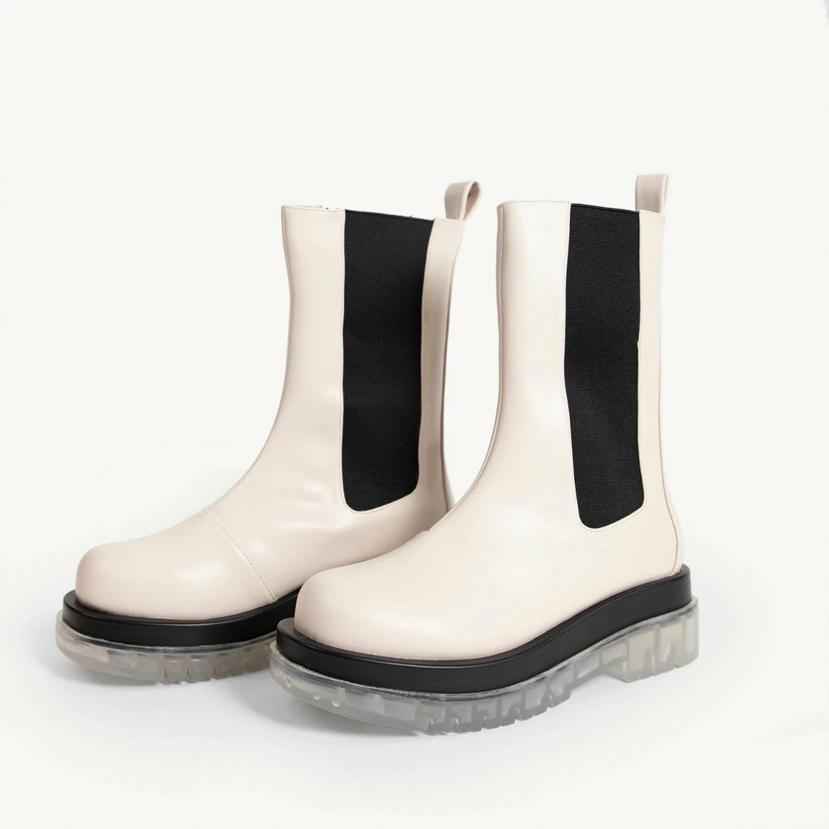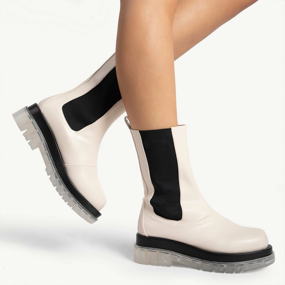 Are you ready for the new update of Kendall? We are simply obsessed! Neville blends that chunky biker boot styling with a Chelsea boot design. Finishing up your calf, and bringing a real statement to your footwear. For the girls that want to look great, tick the trend boxes AND make a statement, the white is for you. The monochrome contrast and Perspex gum sole compliments one another to perfection. These boots will look amazing jeans, joggers, leggings and cycling shorts! Have a look at how our Influencers are styling them for inspo!