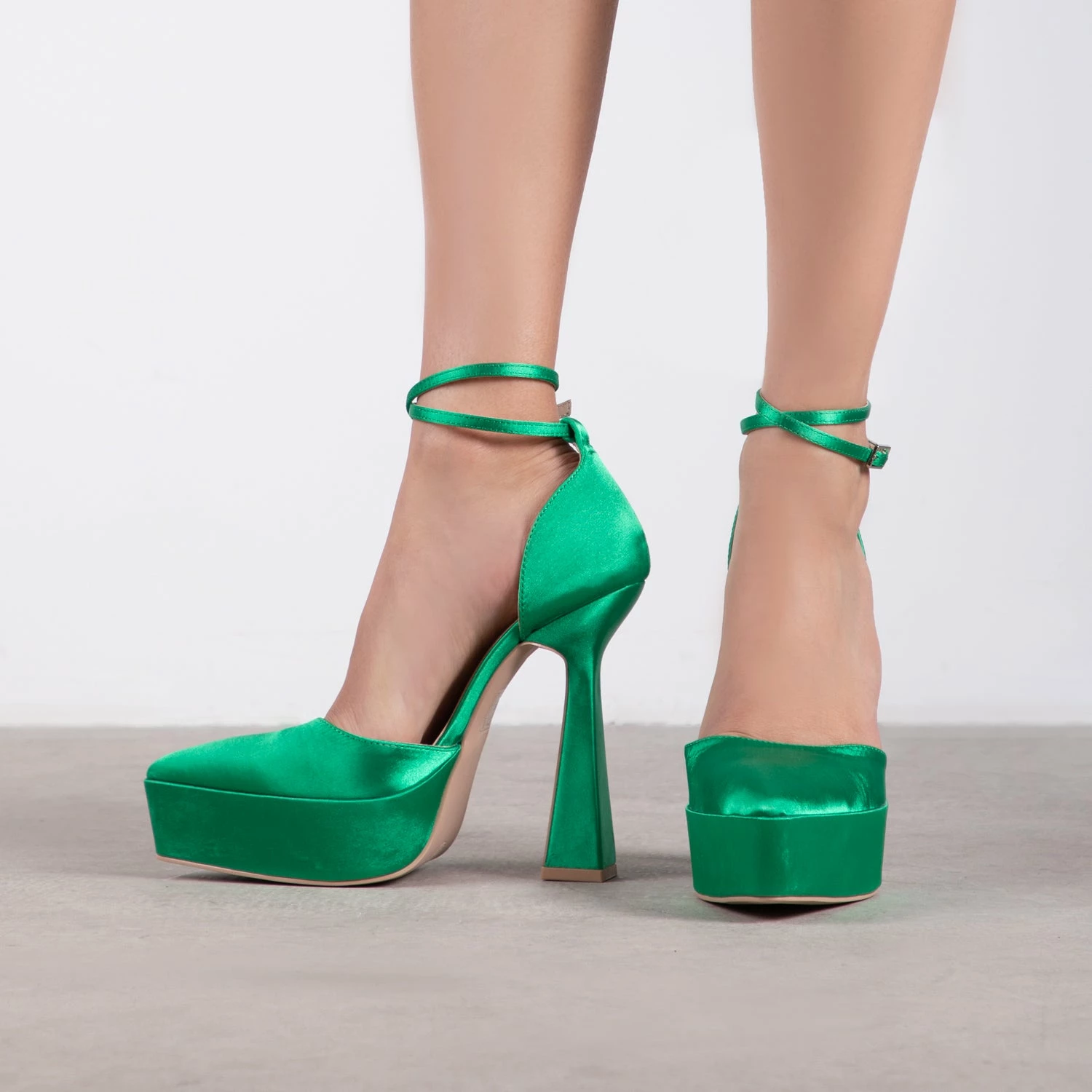 Sky high, dipped in satin with a moulded almond toe sitting comfortably on a wide platform. Feeling glamourous has never been so easy, stay Valentines ready with RAID.