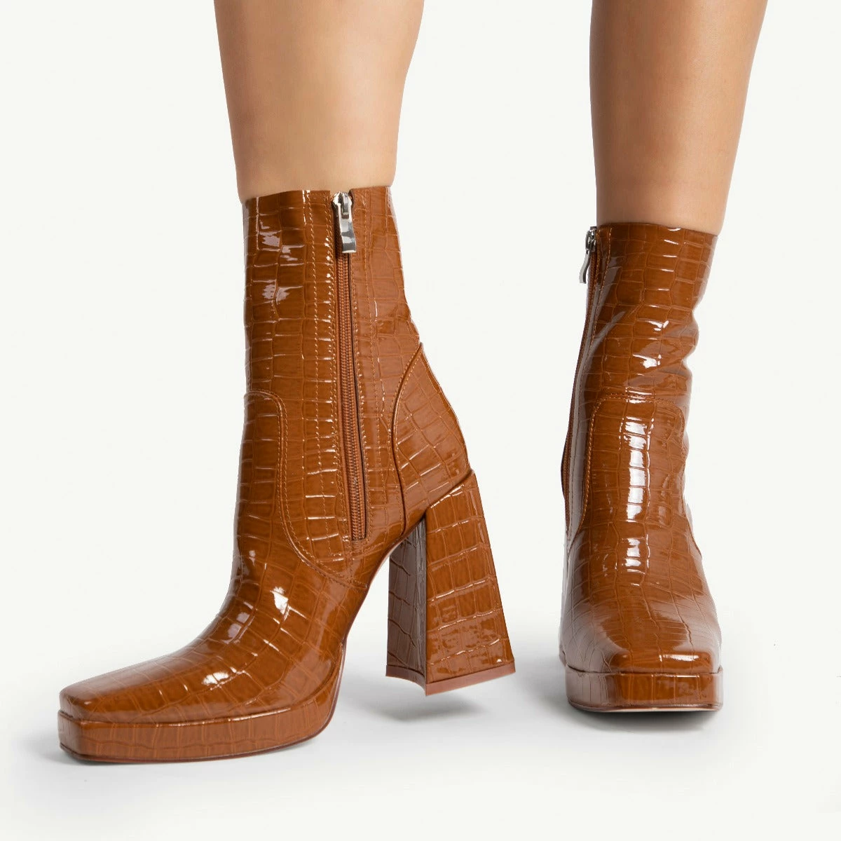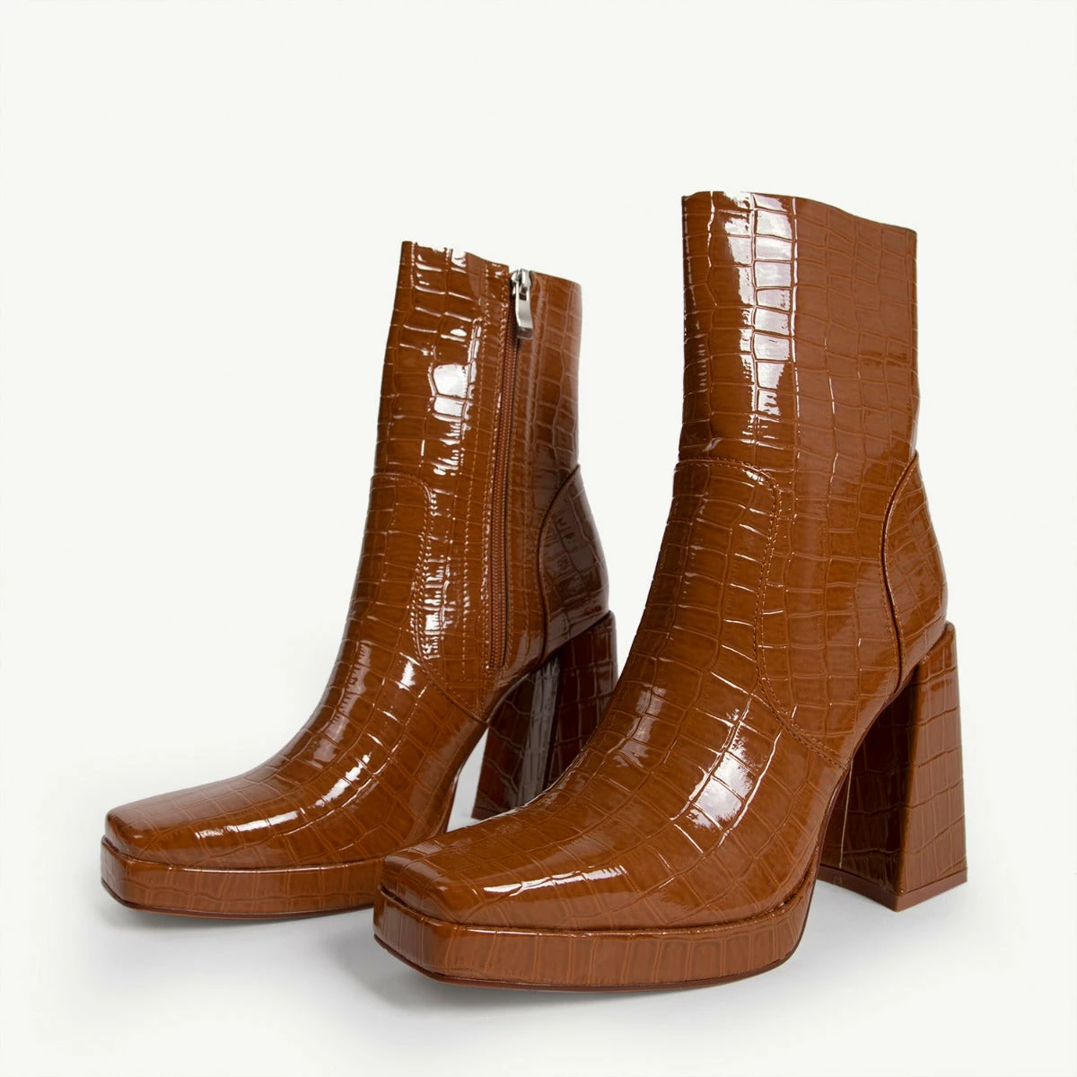 SKU: CMFPZ 7187985694875 Categories: Ankle Boots, Boots Tags: Ankle Boots, Autumn Shop, AW20, BFW30, BLACKFRIDAY, Block Heeled Boots, Boots, Boots to Party, Brown, Capsule1, Category_Default/New In/New in Ankle Boots, CD, Colour_brown, Croc, EB30, Fest23, Patent, Platform, Platforms, Pride23, RAID, Square Toes, Transitional Styling, Trendn, Western 1, Women