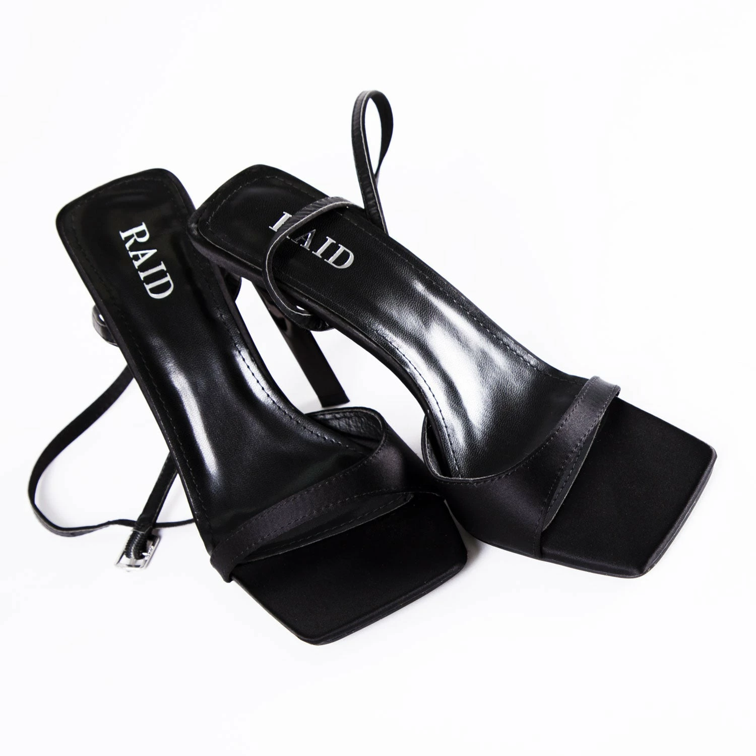 Be the first to review “RAID Zuni Heeled Sandal In Black Satin” Cancel reply